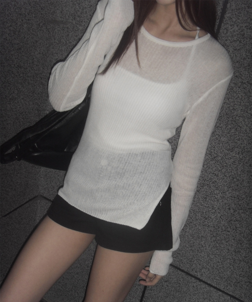 슬림핏 트임 긴팔 니트 아이보리