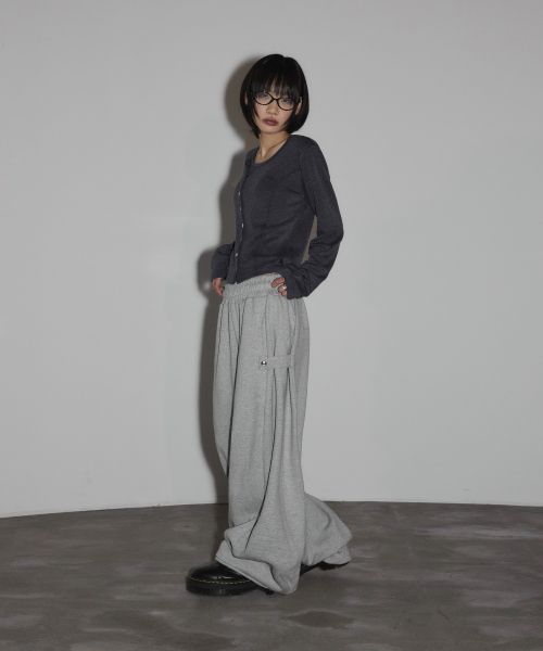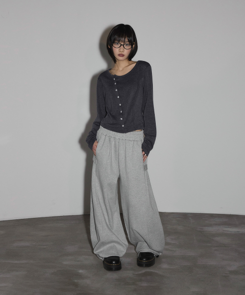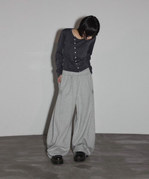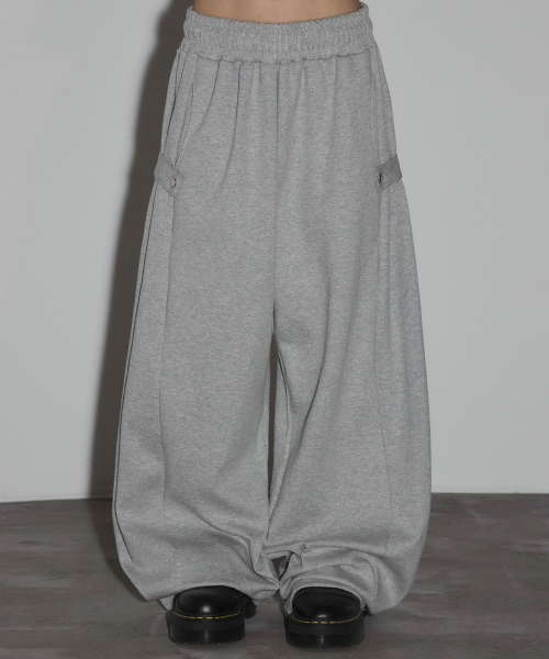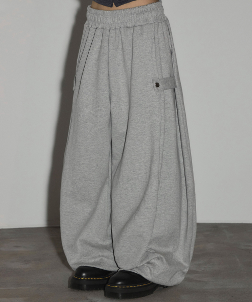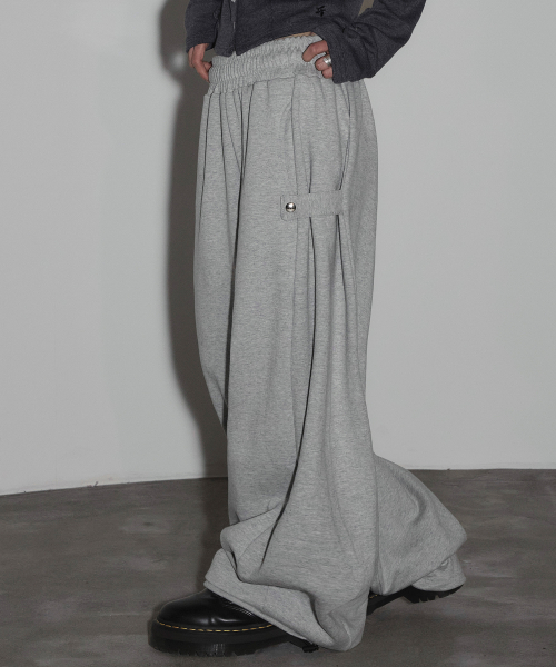 스냅 사이드 턱 와이드 스웨트 팬츠[그레이]