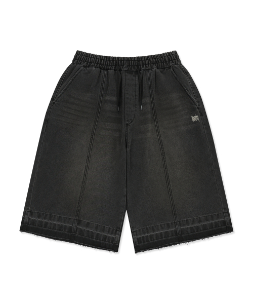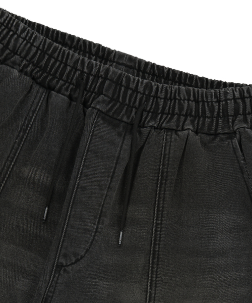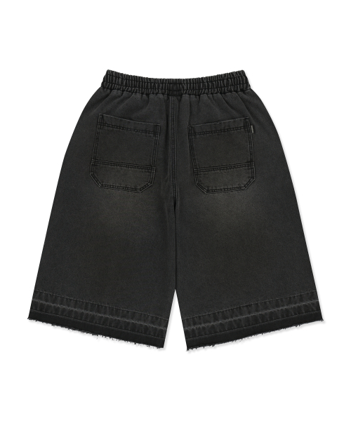 WASHED BANDING BERMUDA PANTS - BLACK
