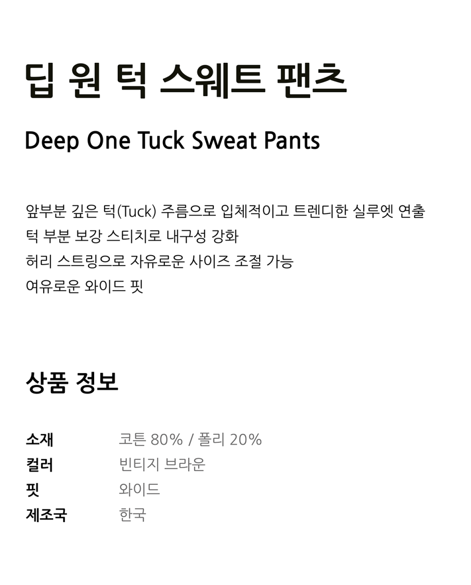Deep One Tuck Sweat Pants [New 2 Colors]