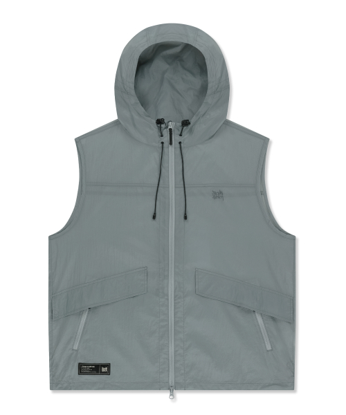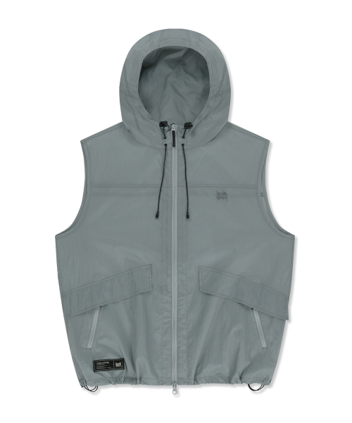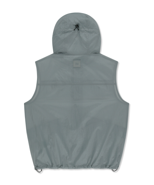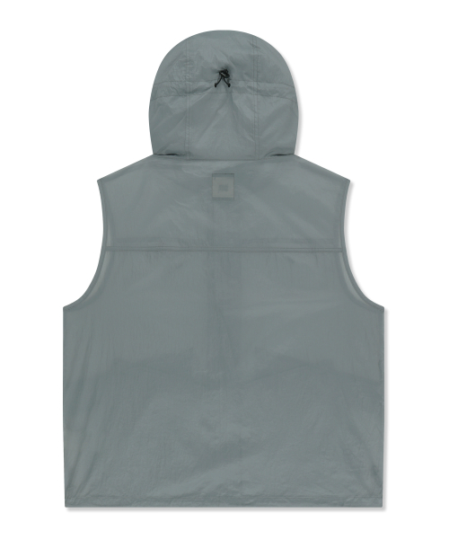 NYLON WASHER HOODED VEST - LIGHT GREY