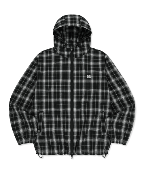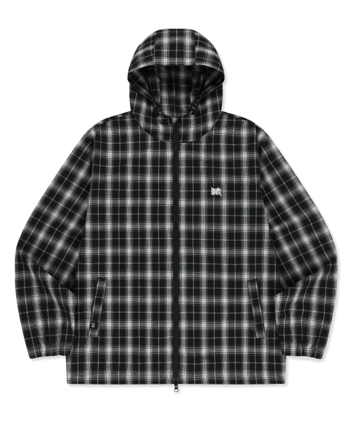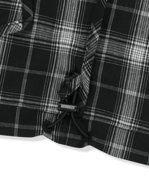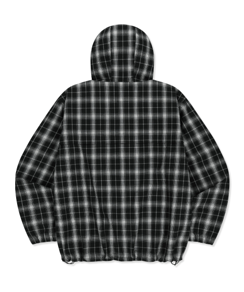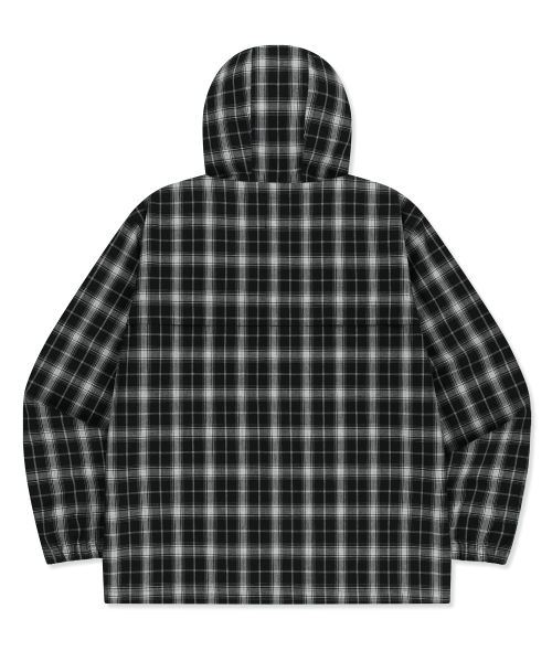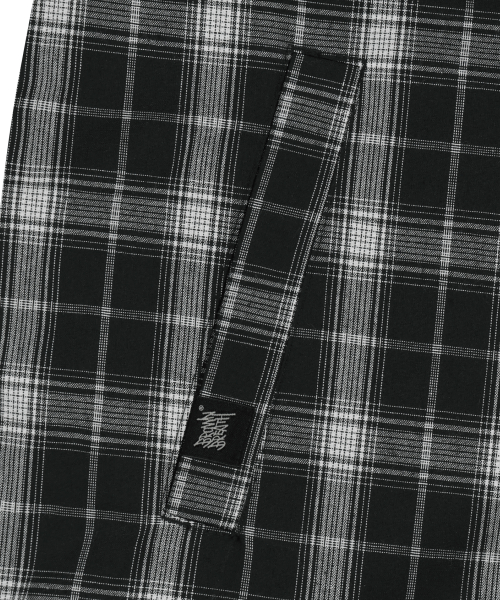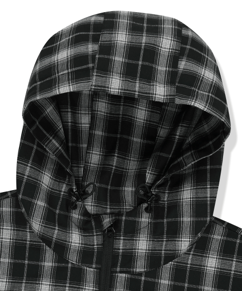 CHECK TAG HOOD ZIP UP SHIRTS - BLACK