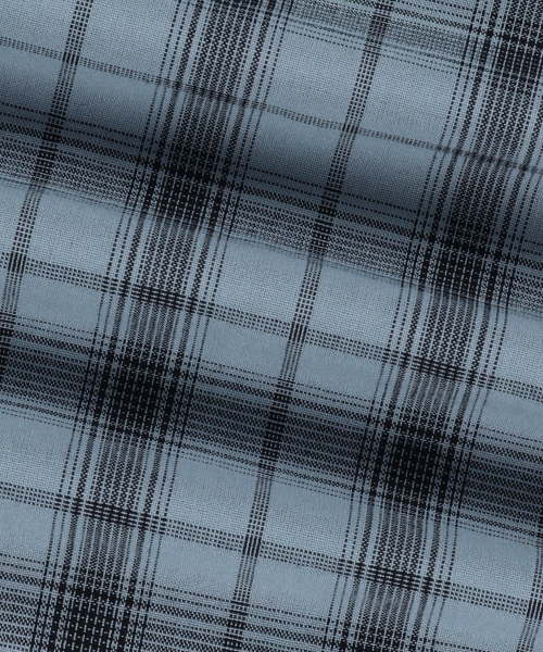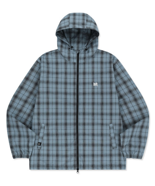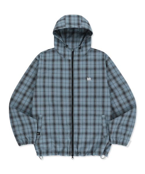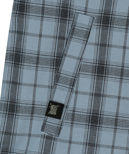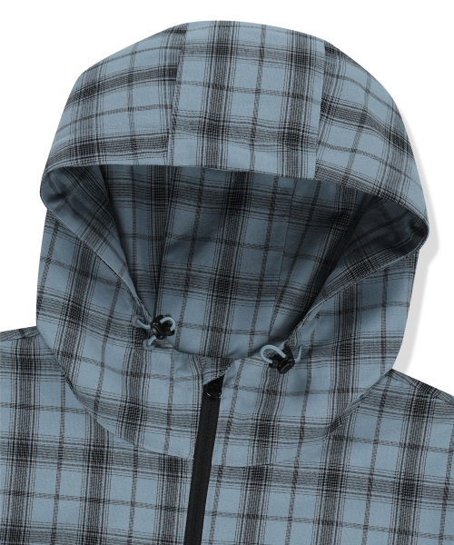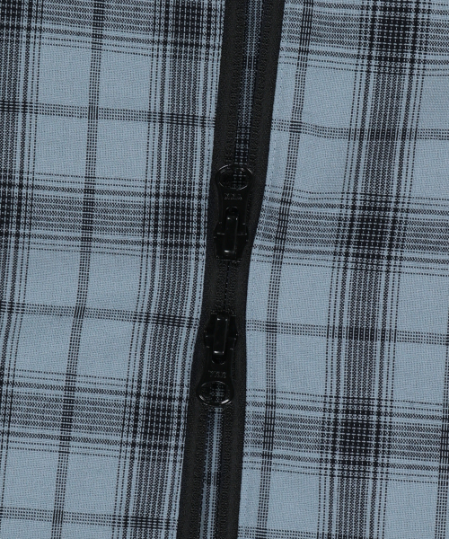 CHECK TAG HOOD ZIP UP SHIRTS - BLUE