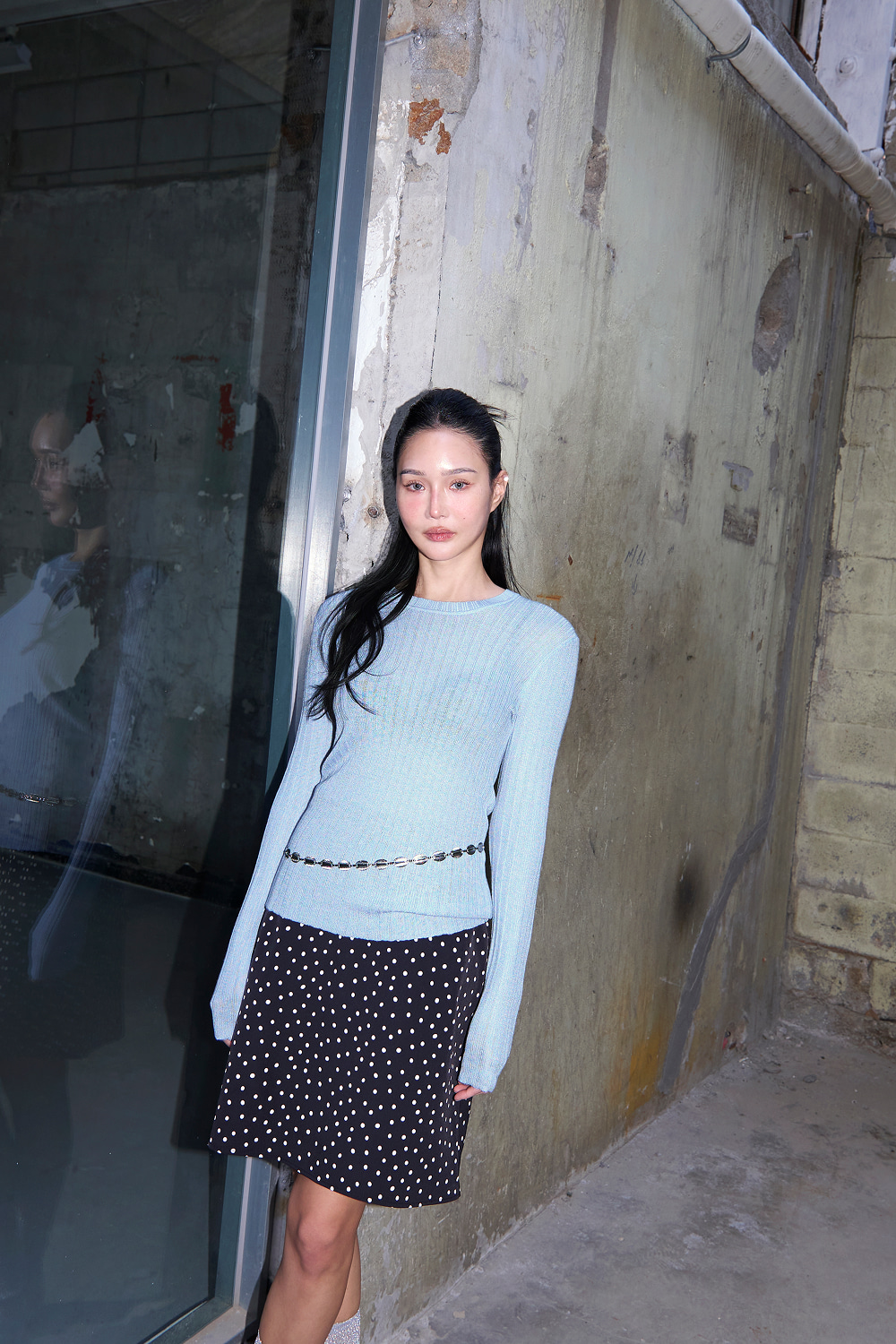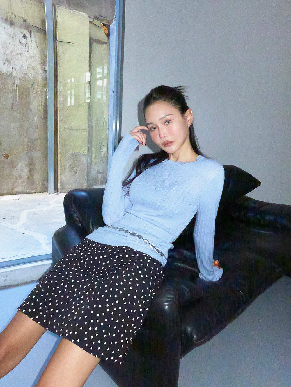 - 은은한 세미 시스루 라인으로 여성스러운 무드 연출