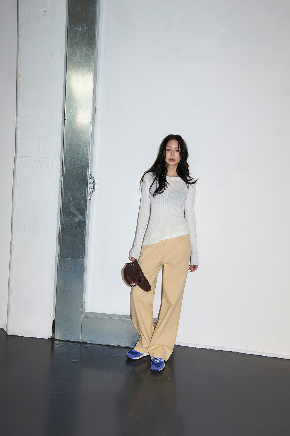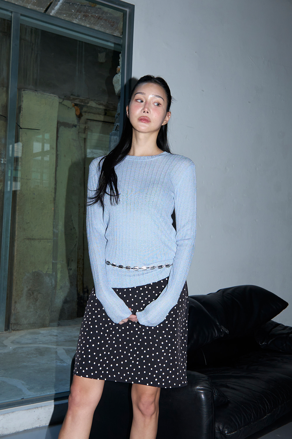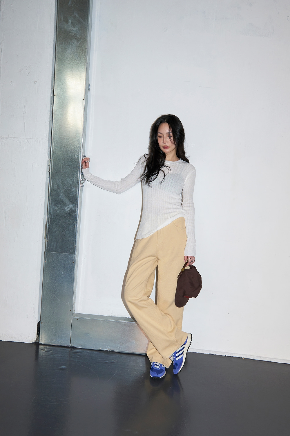 - 잔 세로결 골지 패턴으로 슬림한 라인감 강조