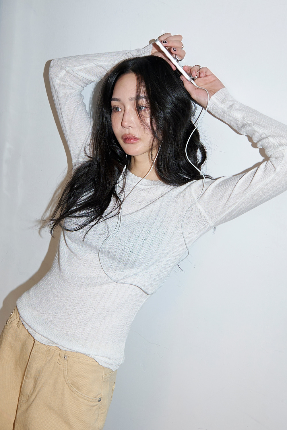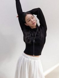 - 여유 있는 소매 기장과 슬림한 핏으로 여리한 실루엣 완성