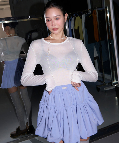 - 비침 있는 소재감으로 원단 자체만으로도 포인트 연출 가능