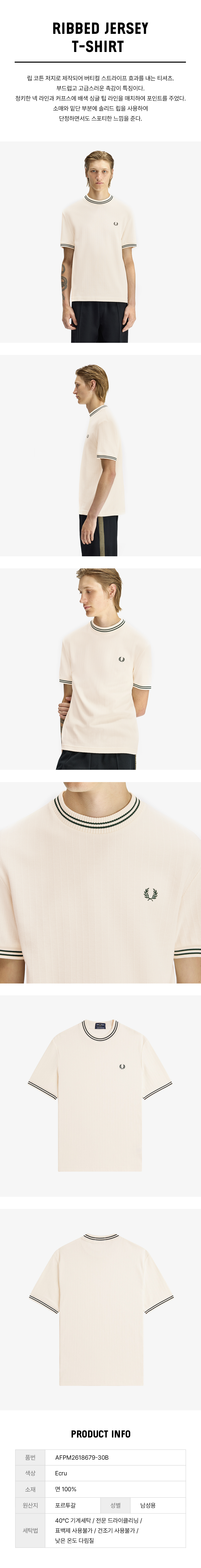 [Sharp] 립 저지 티셔츠 - 에크루 AFPM2618679-30B