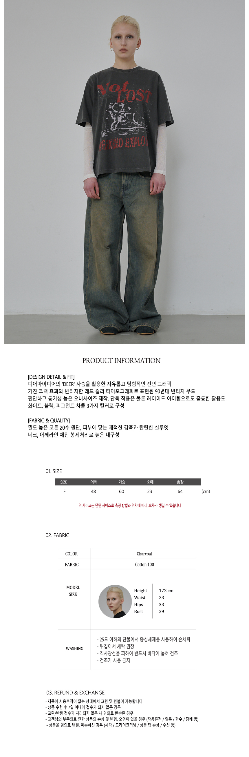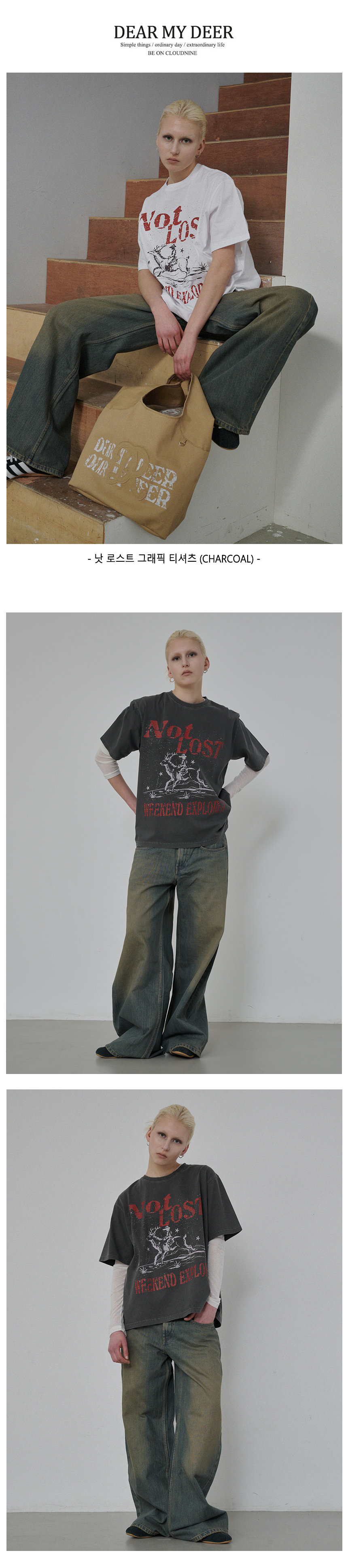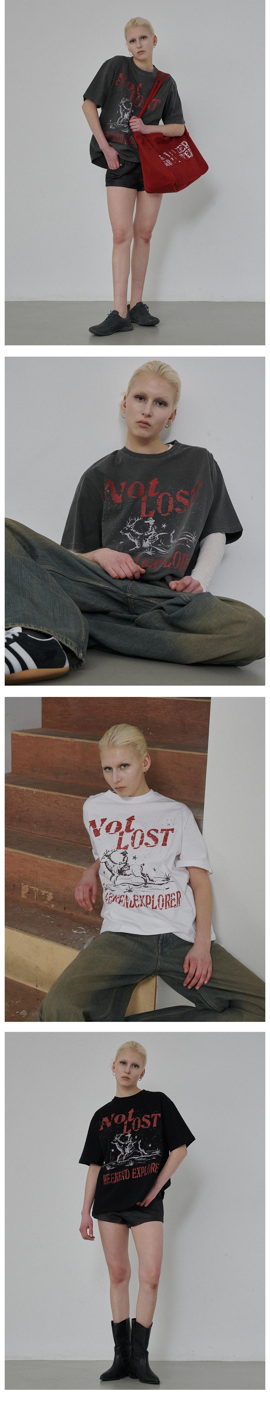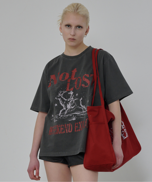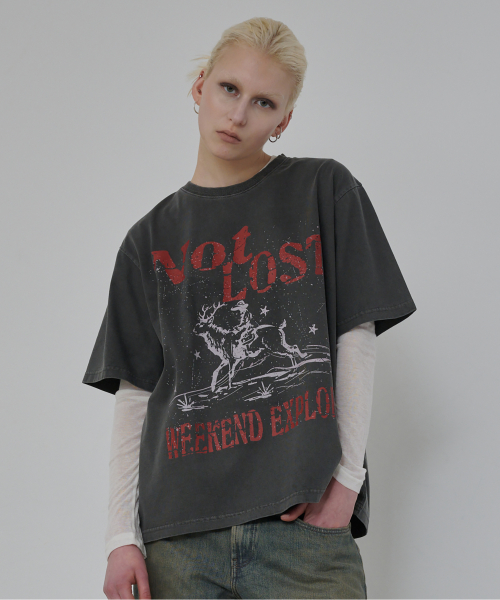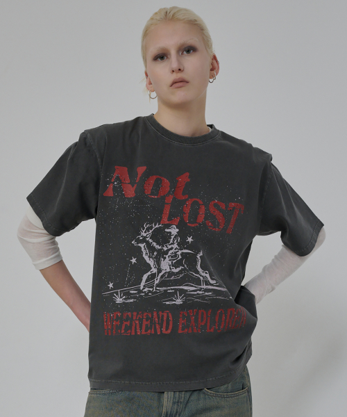 낫 로스트 그래픽 피그먼트 티셔츠 (차콜)