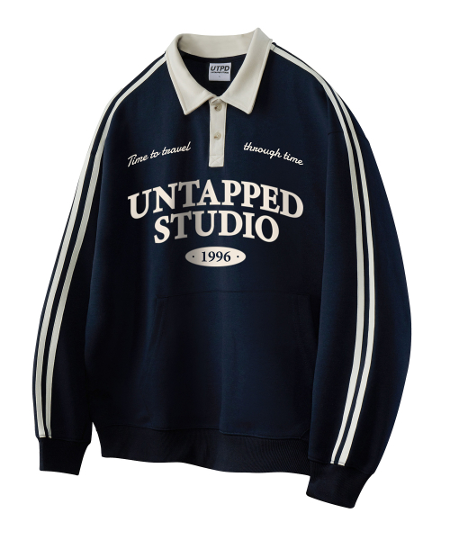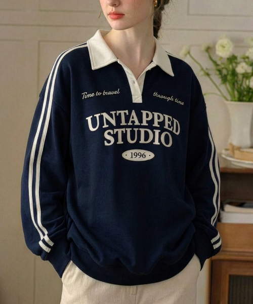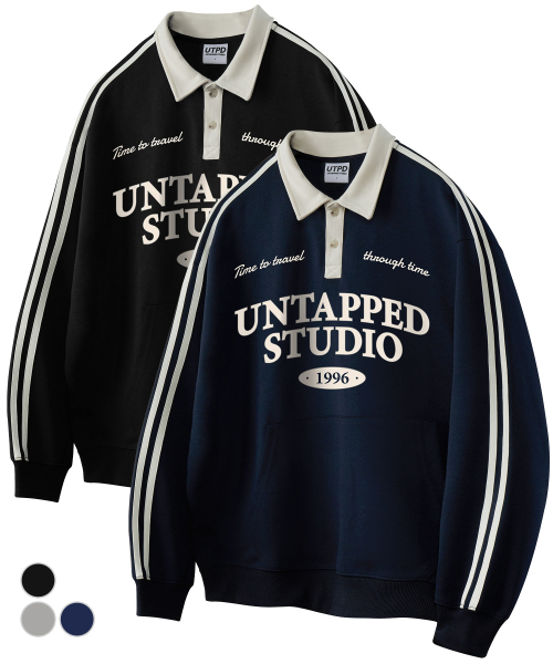 Time travel 트랙 럭비카라 오버핏 맨투맨 스웻 티셔츠 3COLOR