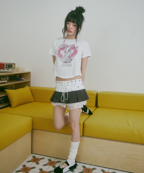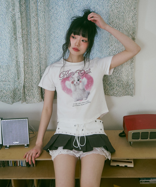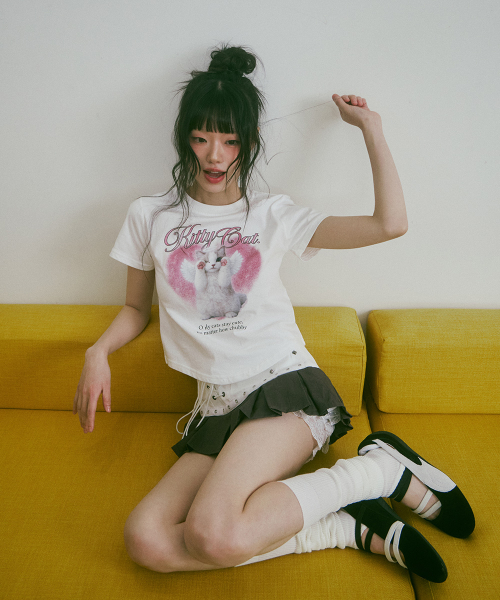 엔젤 아플리케 커브드 스웨트 팬츠[그레이]
