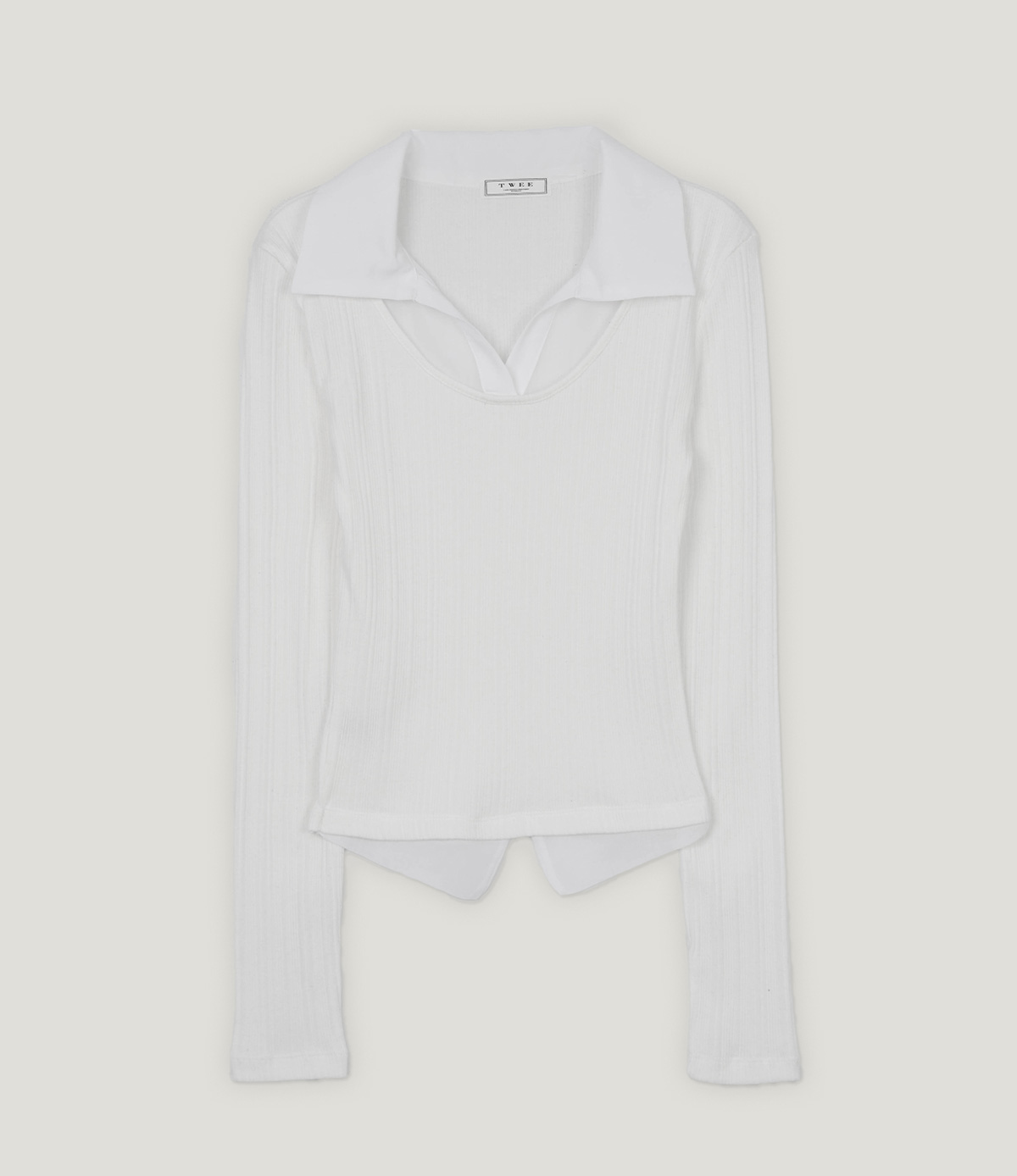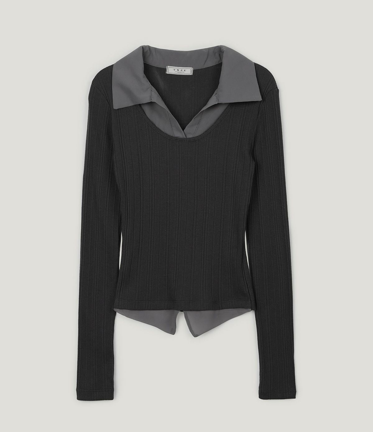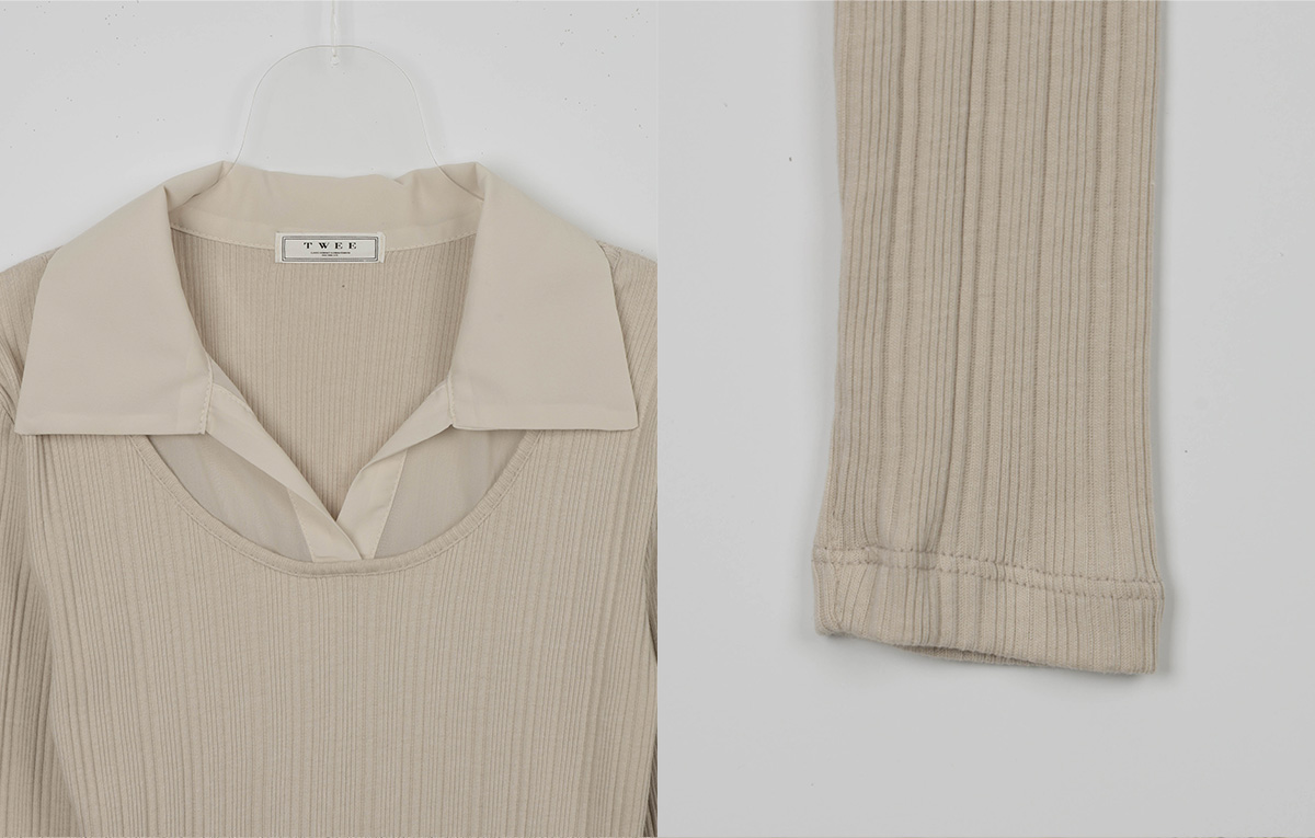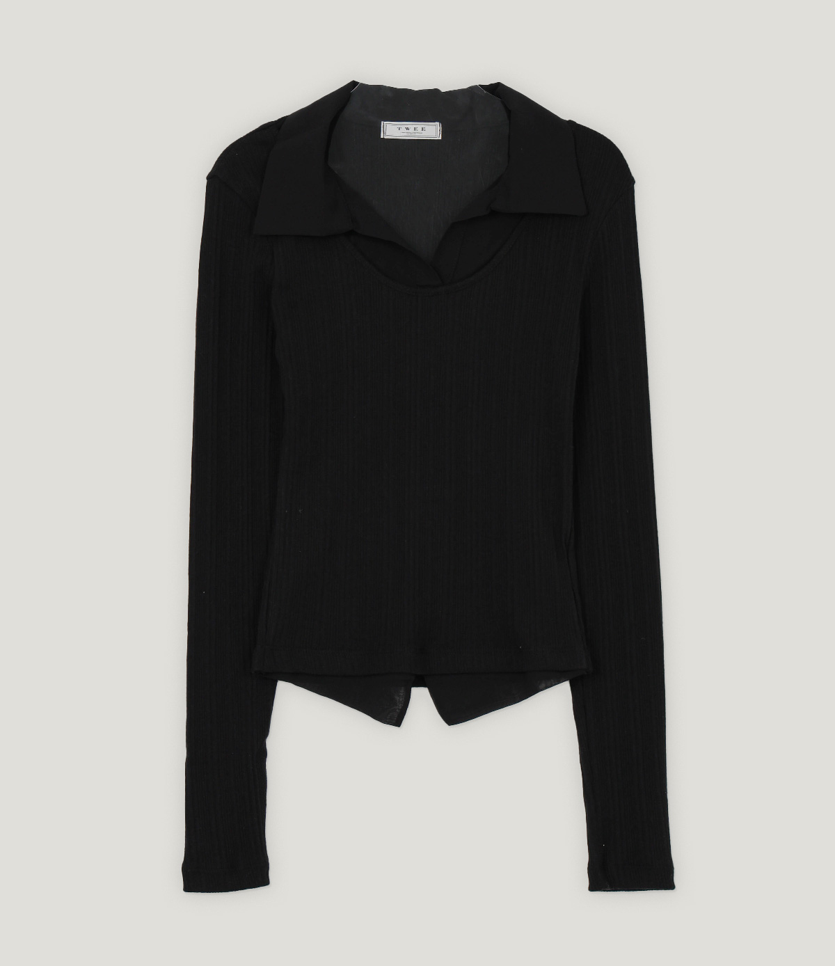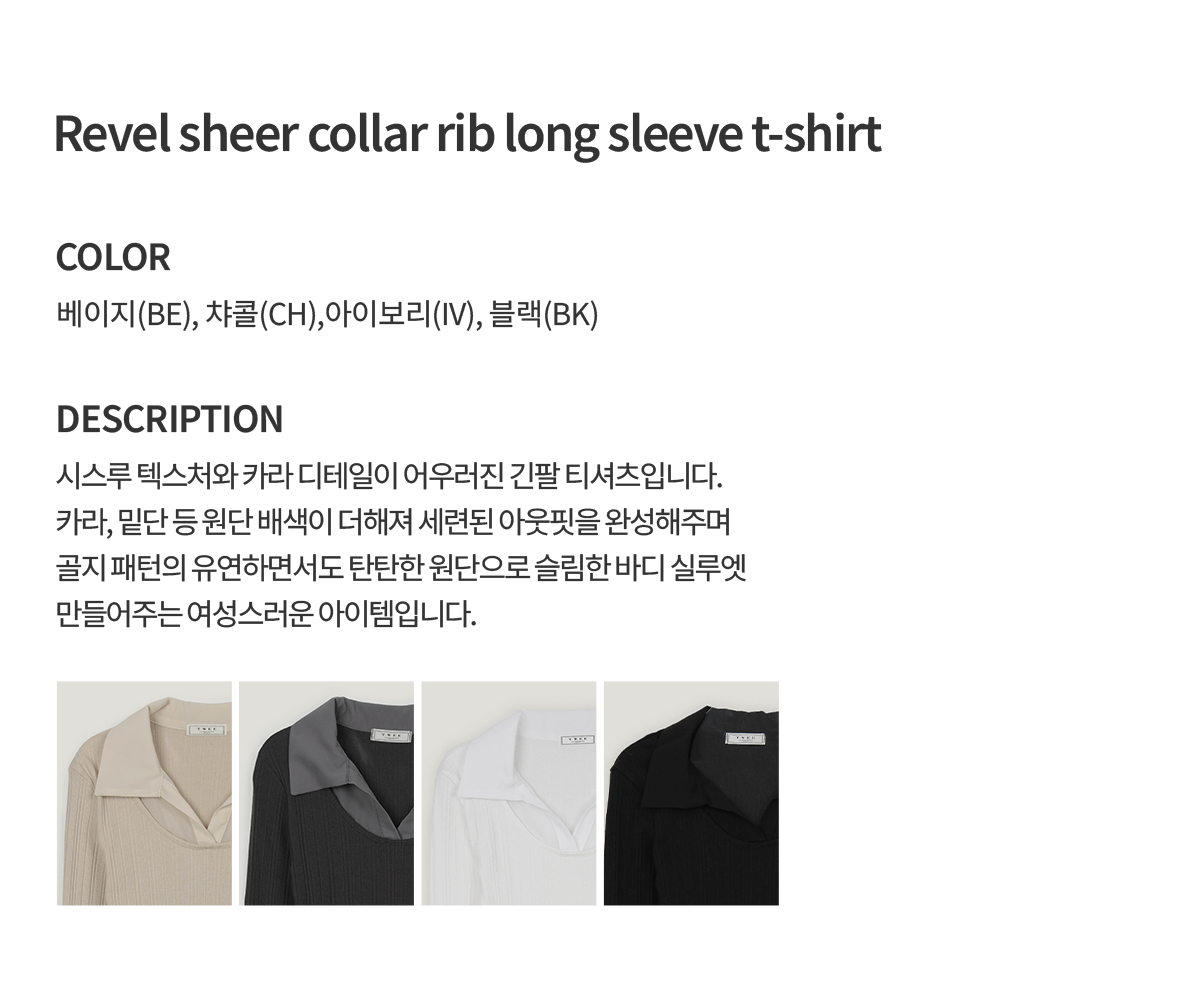 르벨 시스루 카라 골지 긴팔 티셔츠