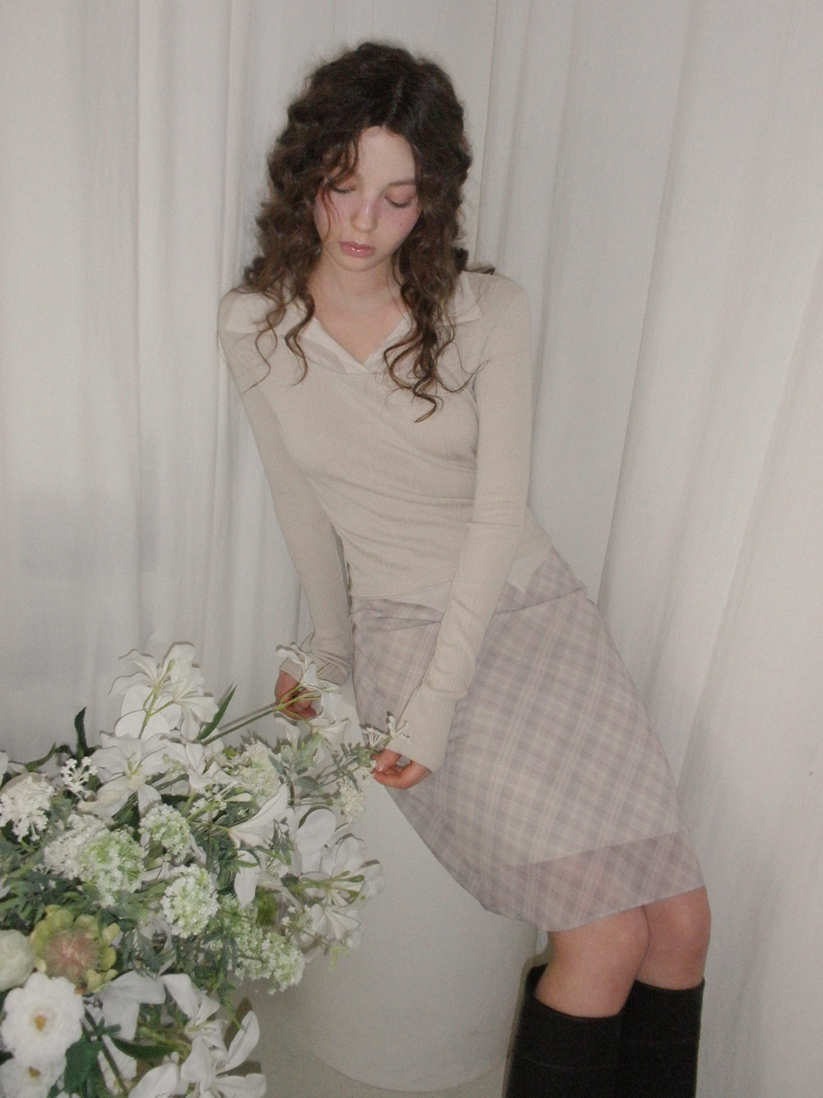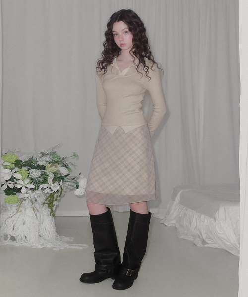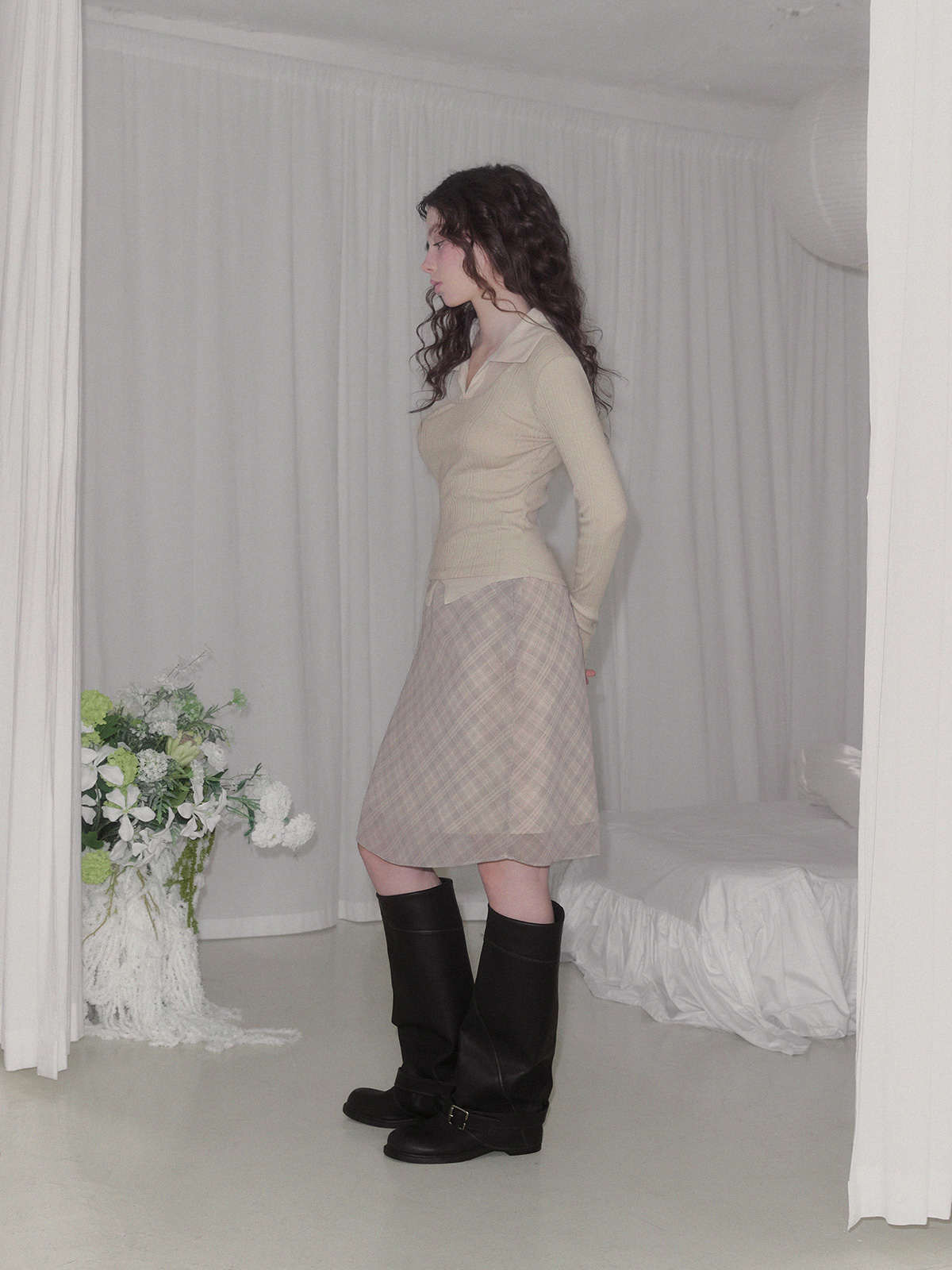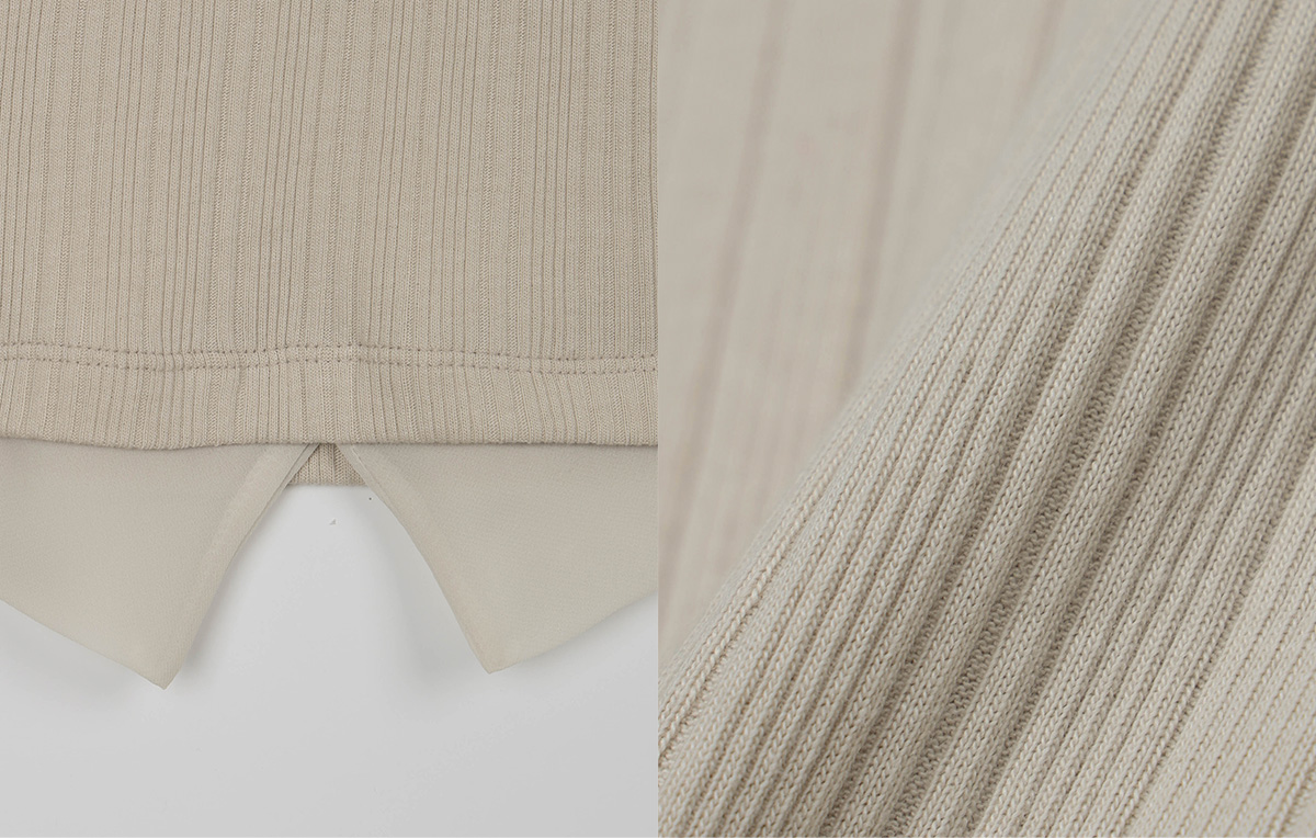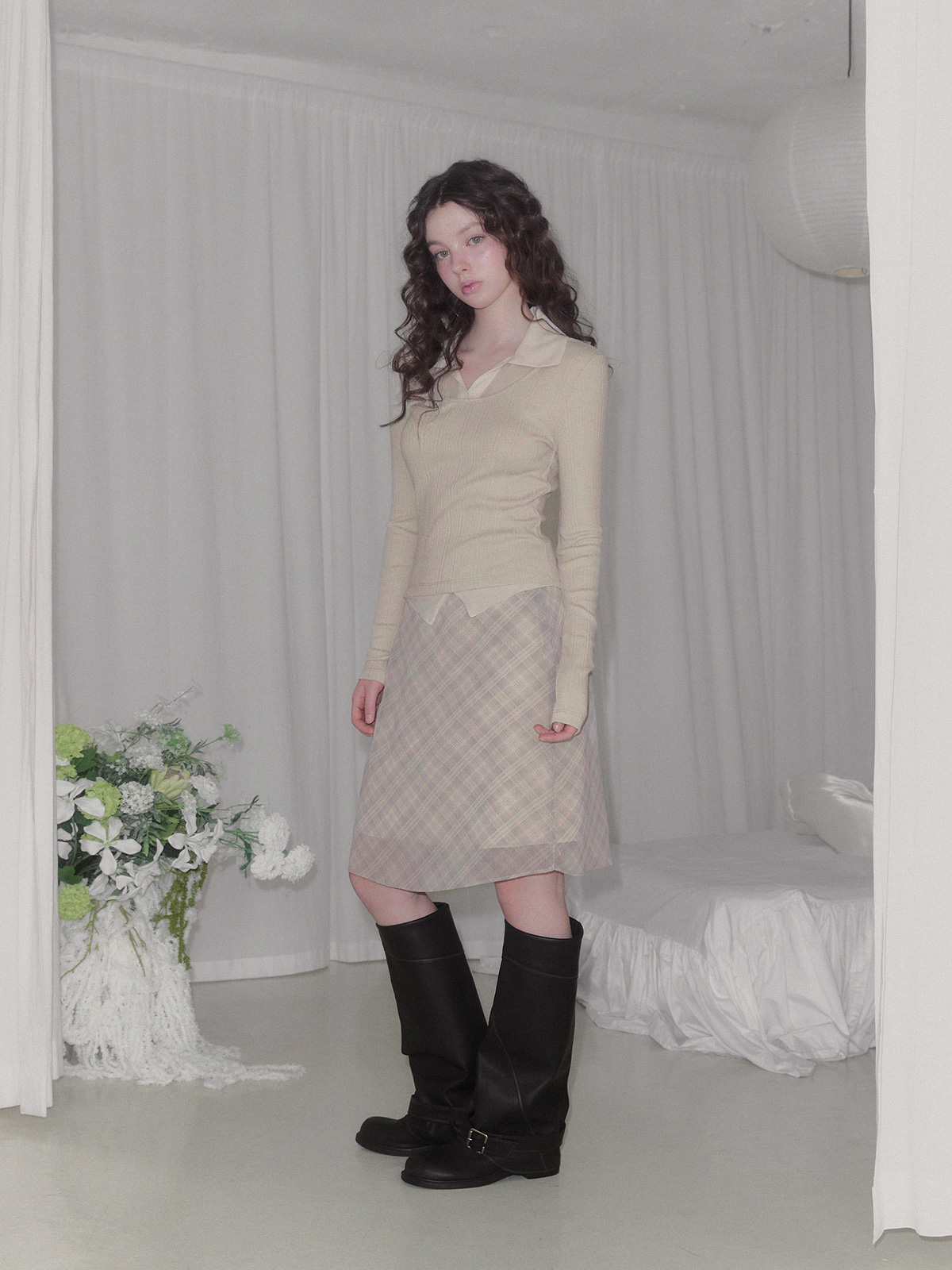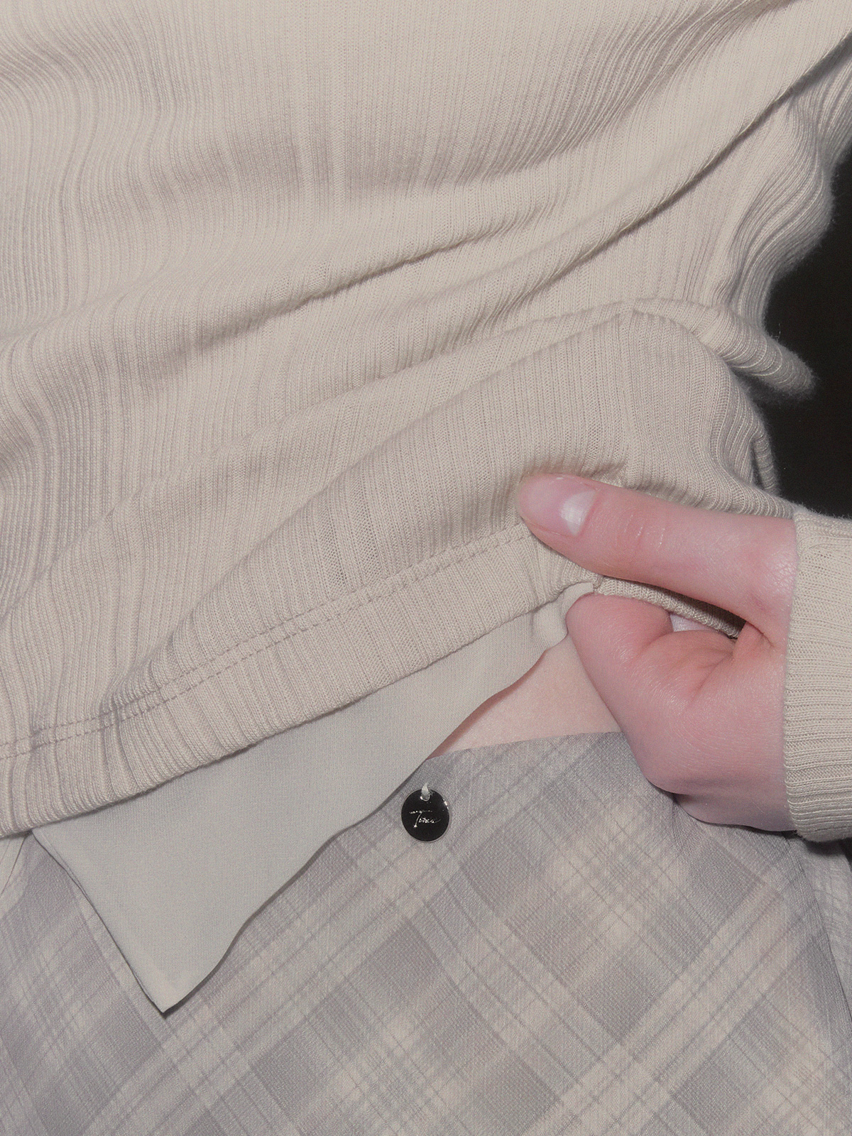 르벨 시스루 카라 골지 긴팔 티셔츠