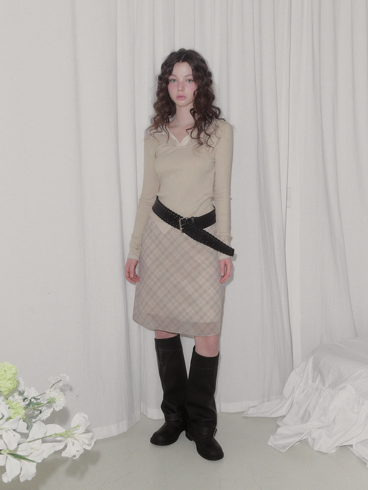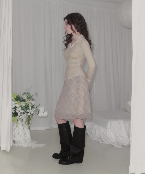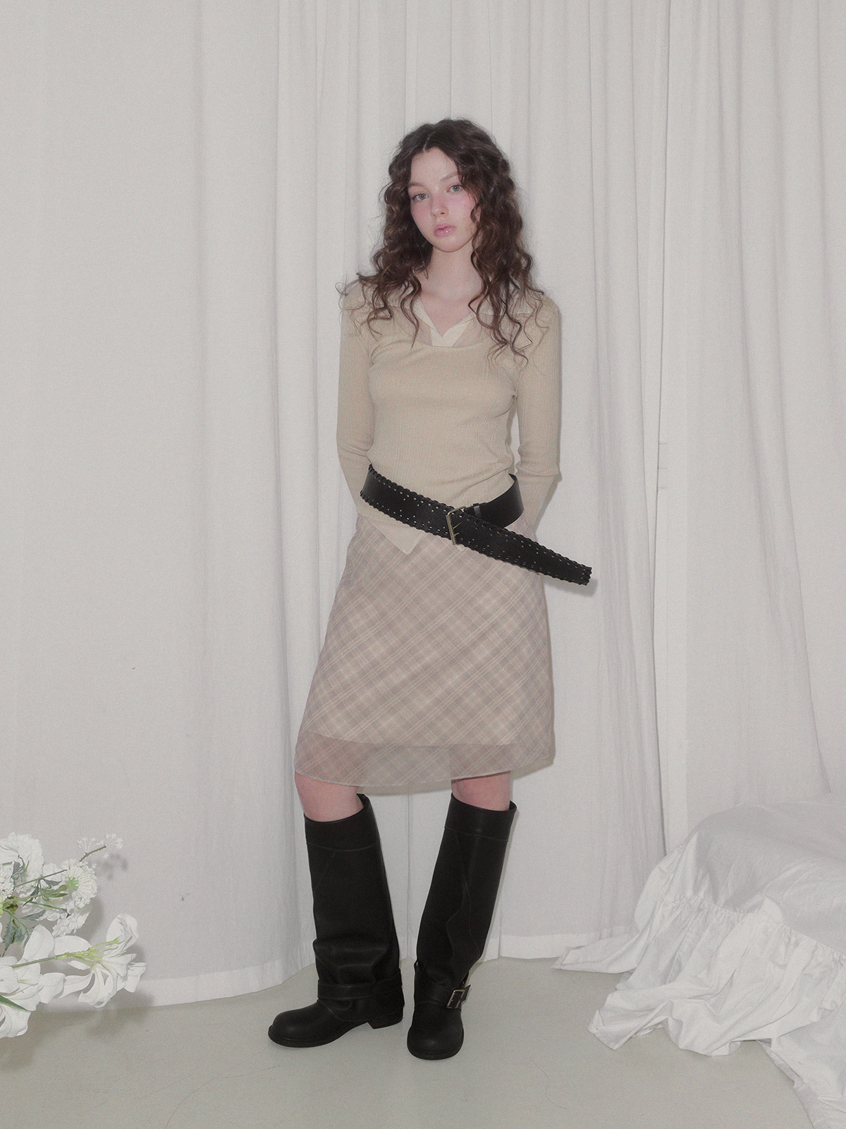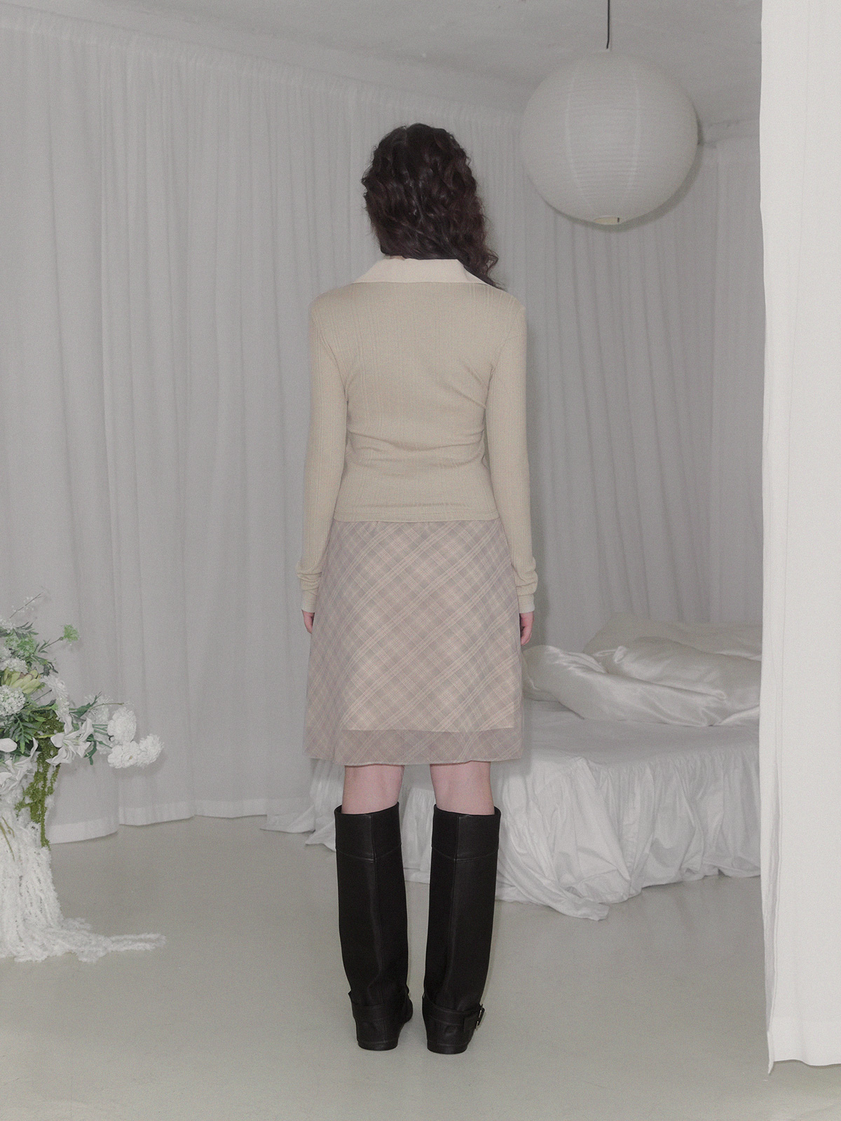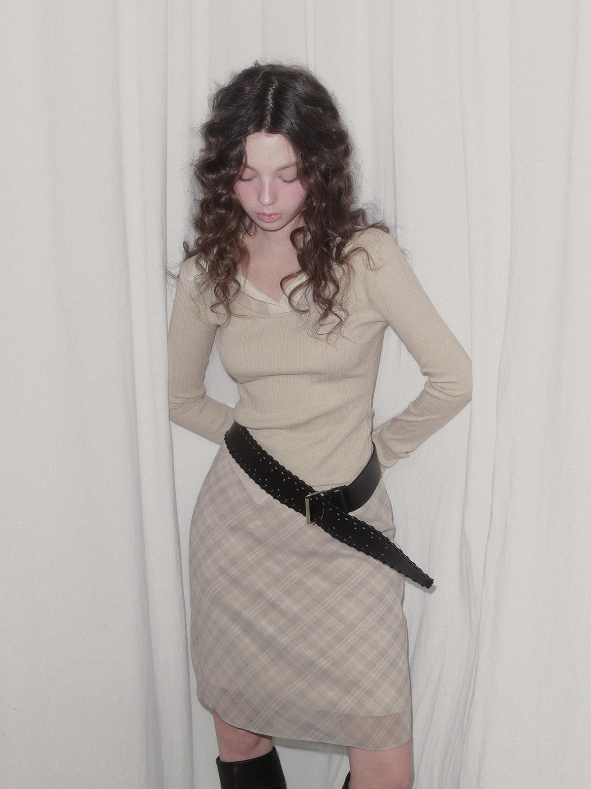 르벨 시스루 카라 골지 긴팔 티셔츠