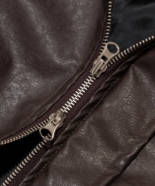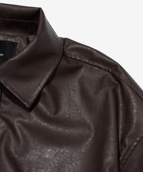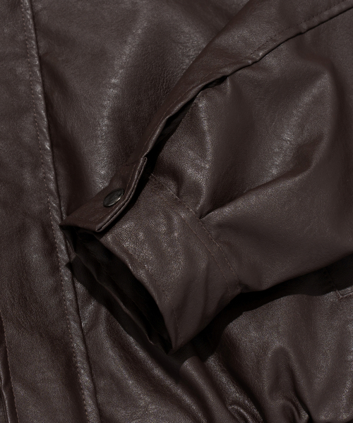 크롭 레더 블루종 자켓 (브라운)