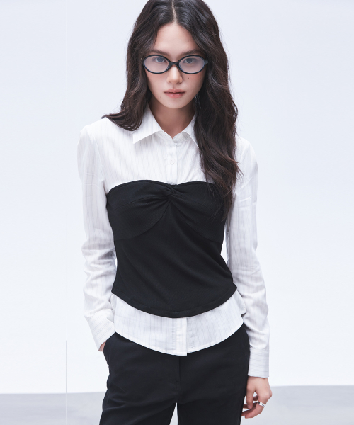 꼬임 뷔스티에 콤비 블라우스_MIWBLG401B
