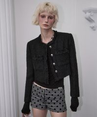 Fringe Crop Tweed Jacket [Black]