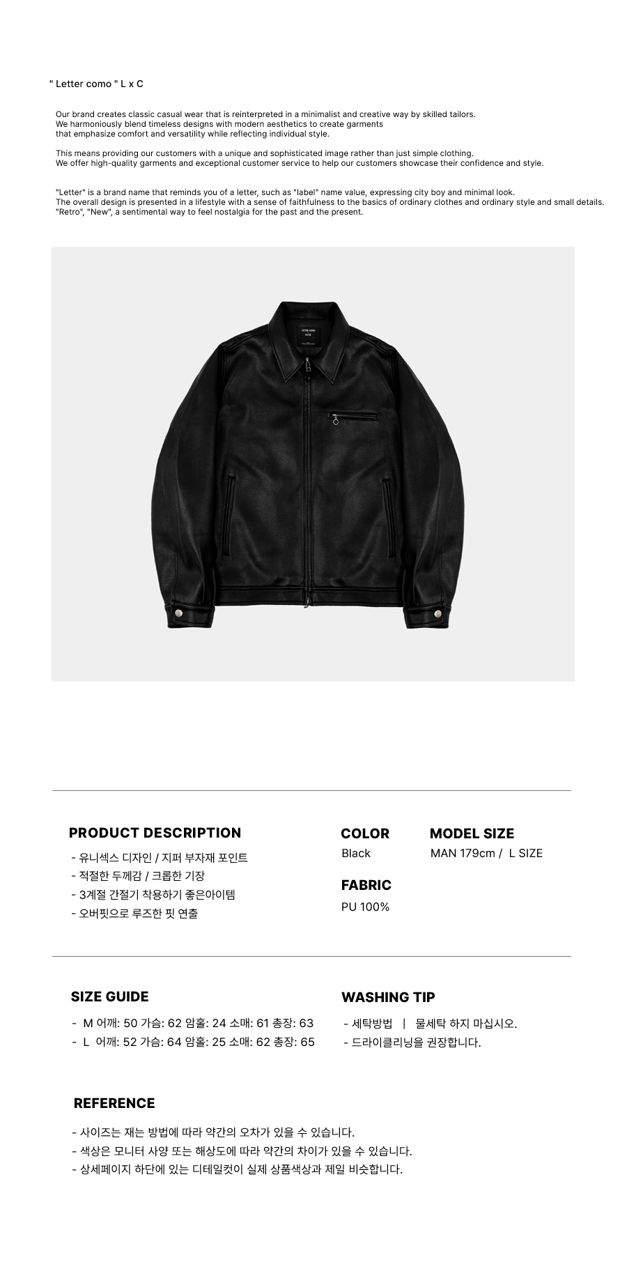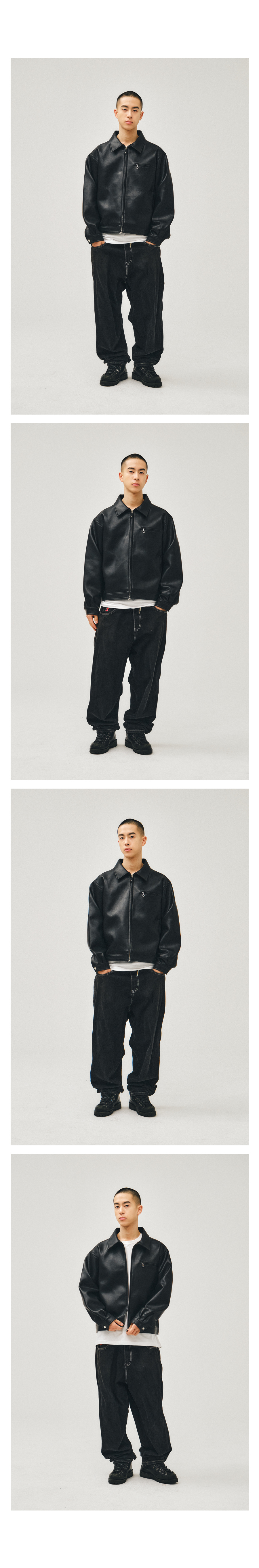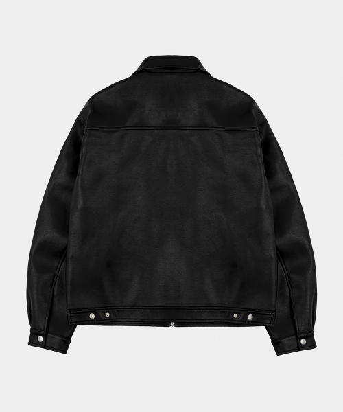 루카 레더 블루종 미니멀 자켓 블랙