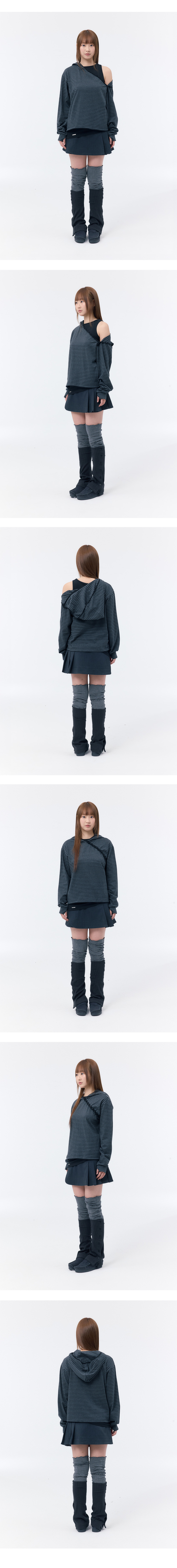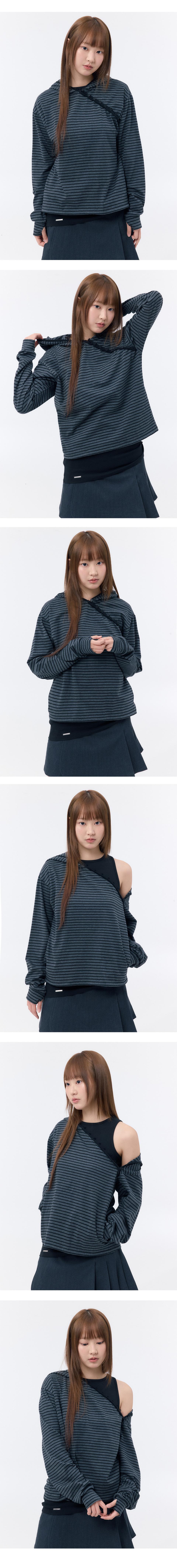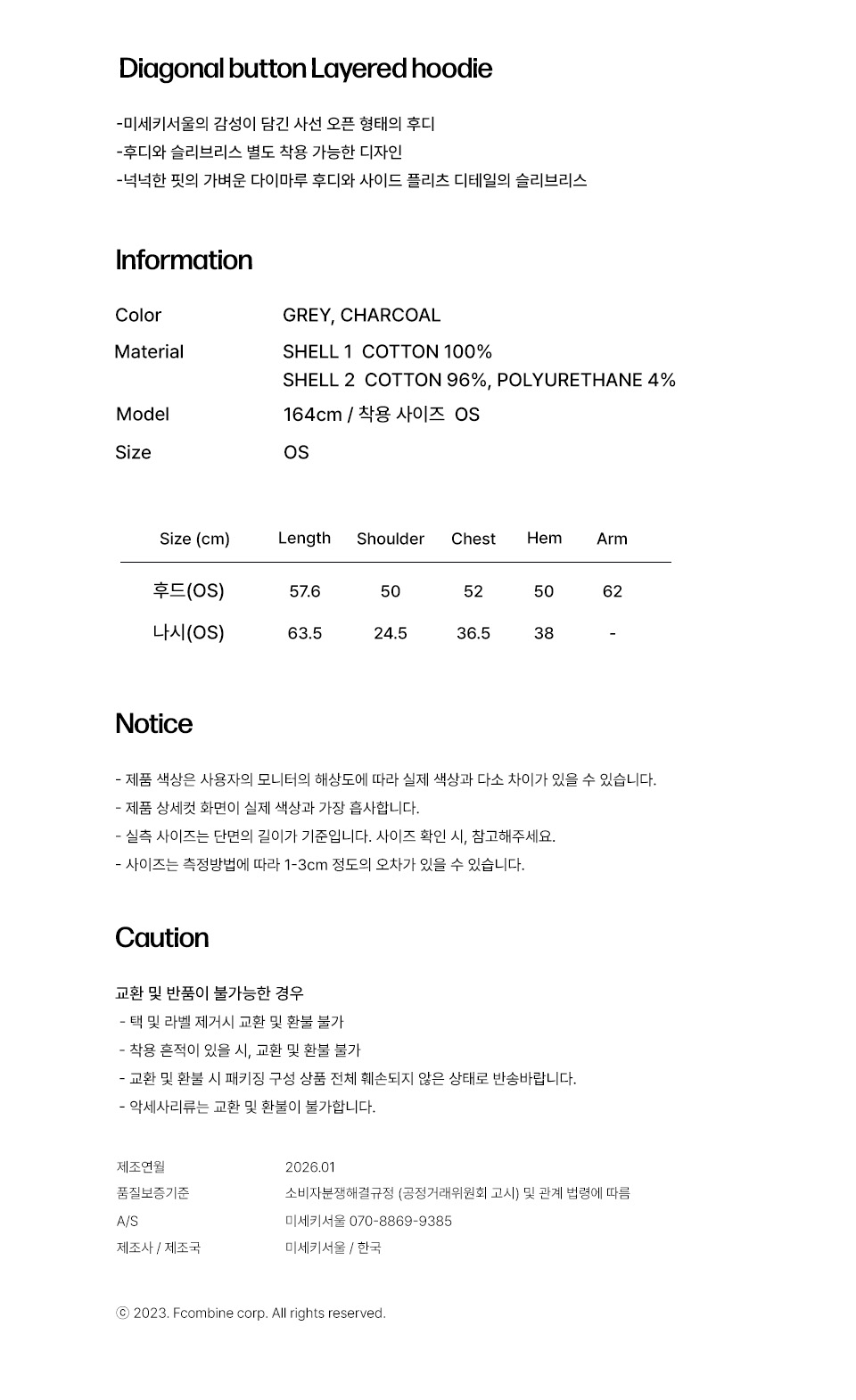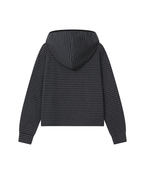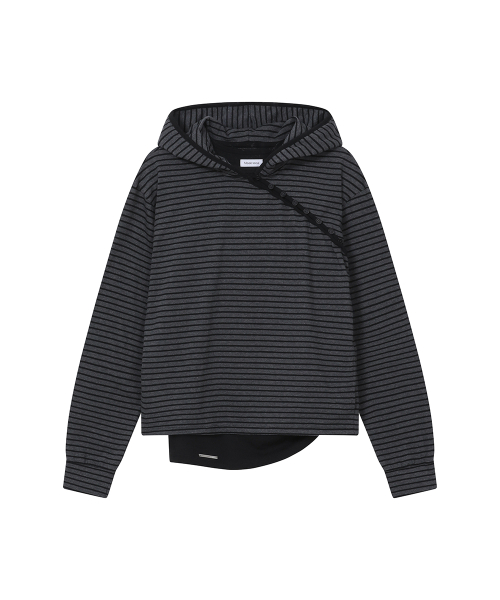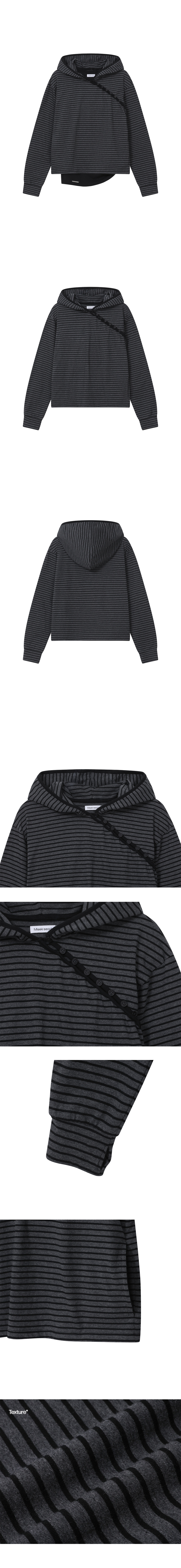 Diagonal button Layered hoodie CHARCOAL