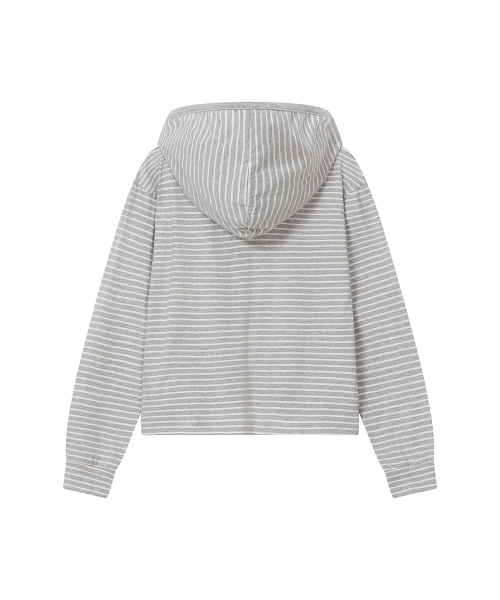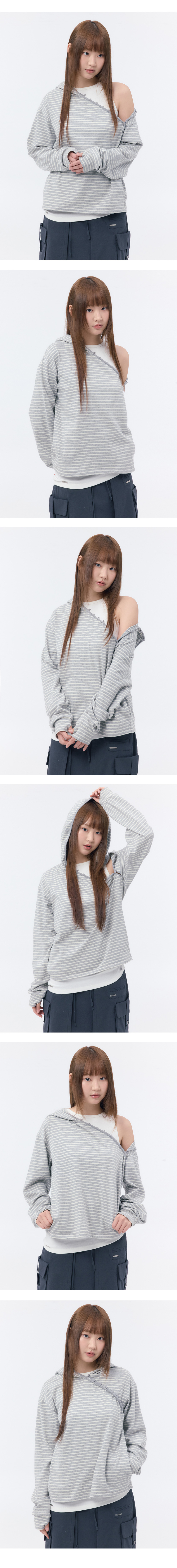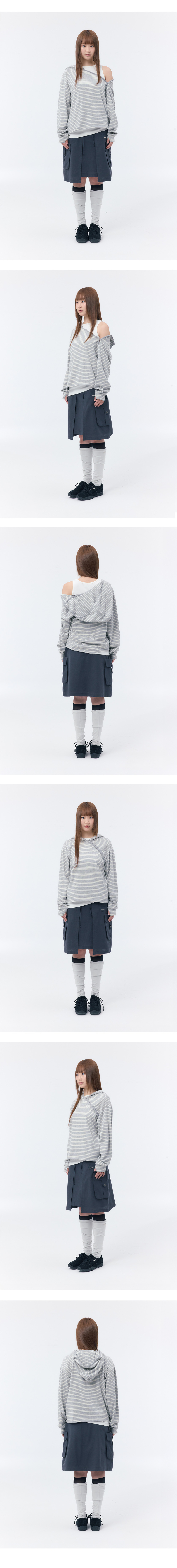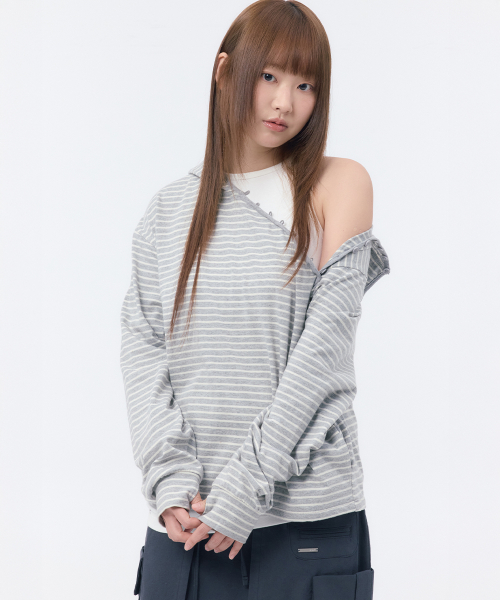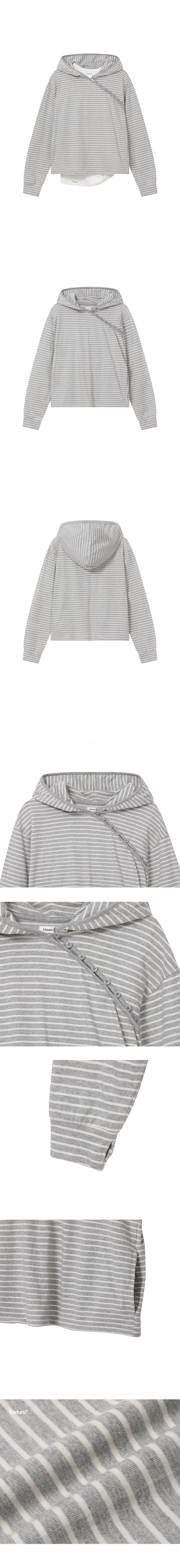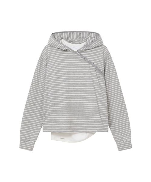 Diagonal button Layered hoodie GREY