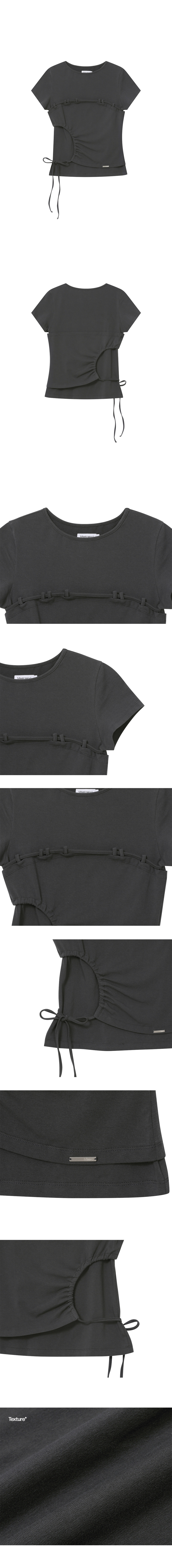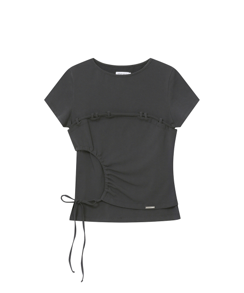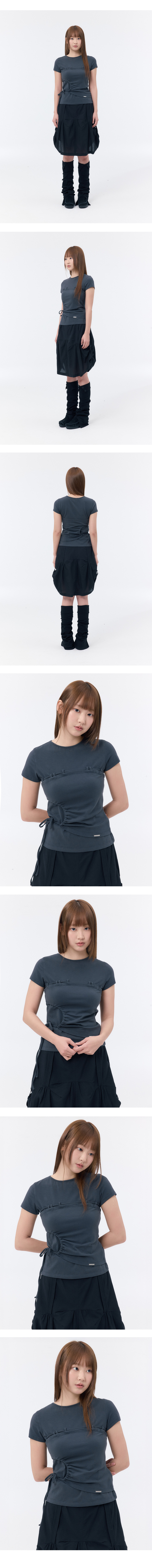 [레이 PICK] Side shirring string mini skirt pants set CHARCOAL