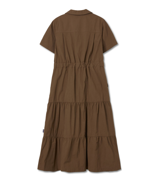 오픈카라 웨이스트 어드저스트 셔링 원피스 브라운_FS2WS01F