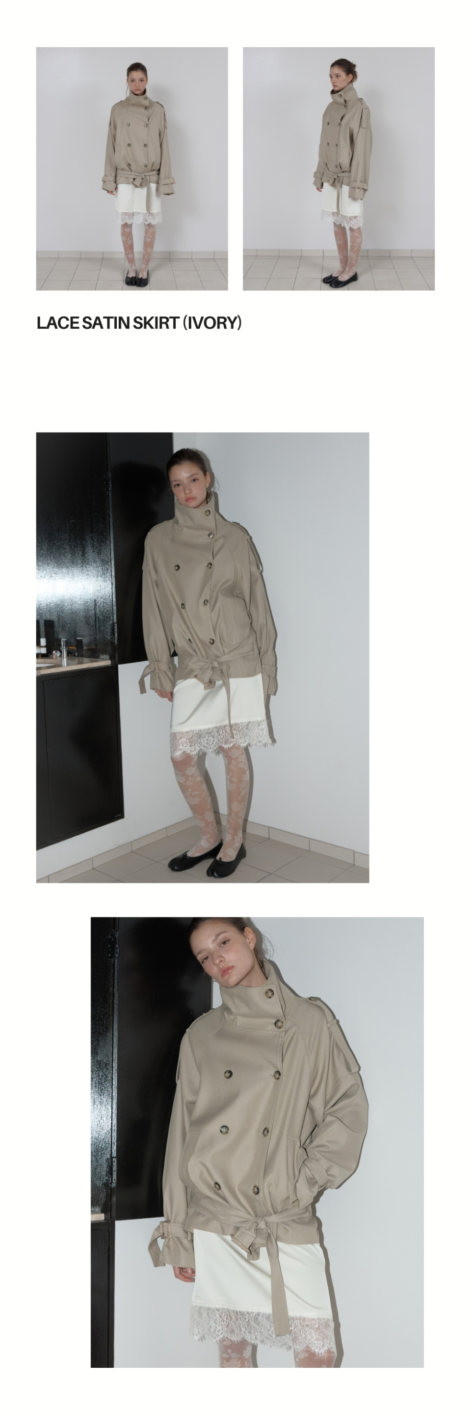 LACE SATIN SKIRT (IVORY)