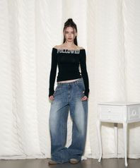 25Damaged Washing Wide Denim (Washed Blue)