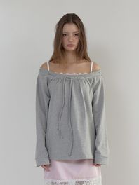 ROUGH EYELET OFF SHOULDER T (MELANGE GREY)