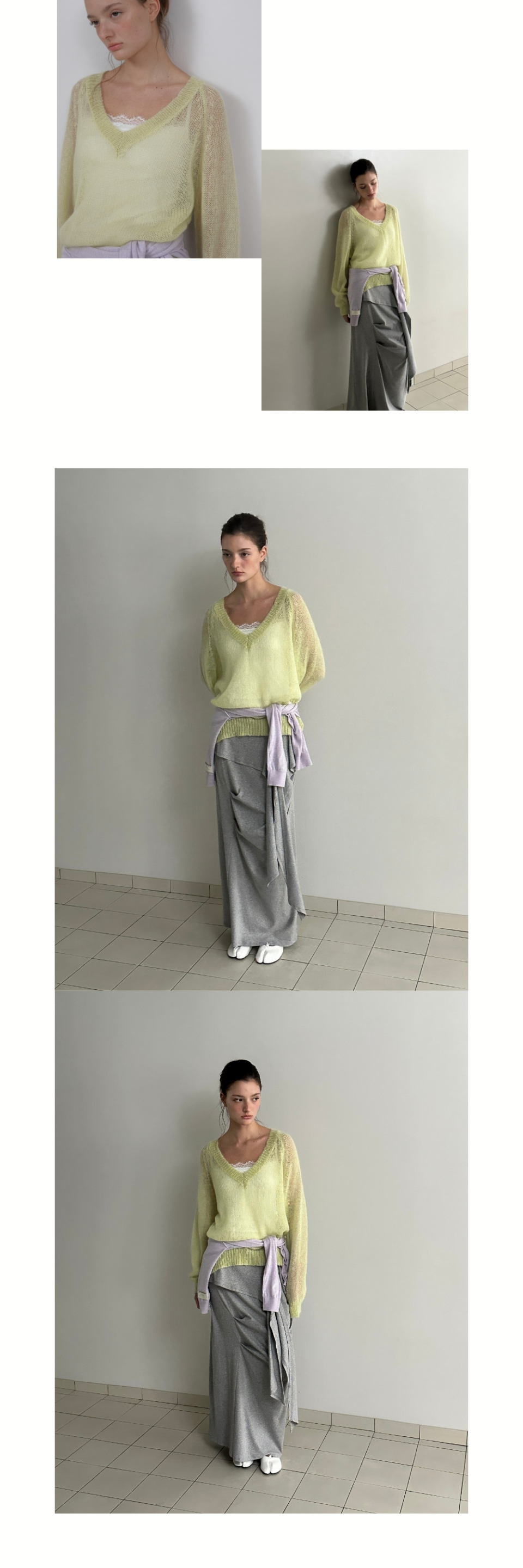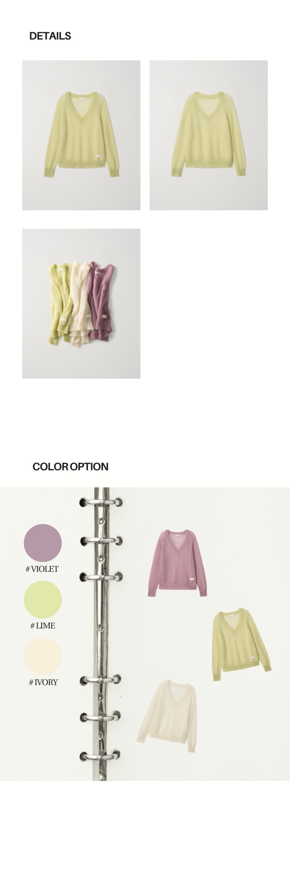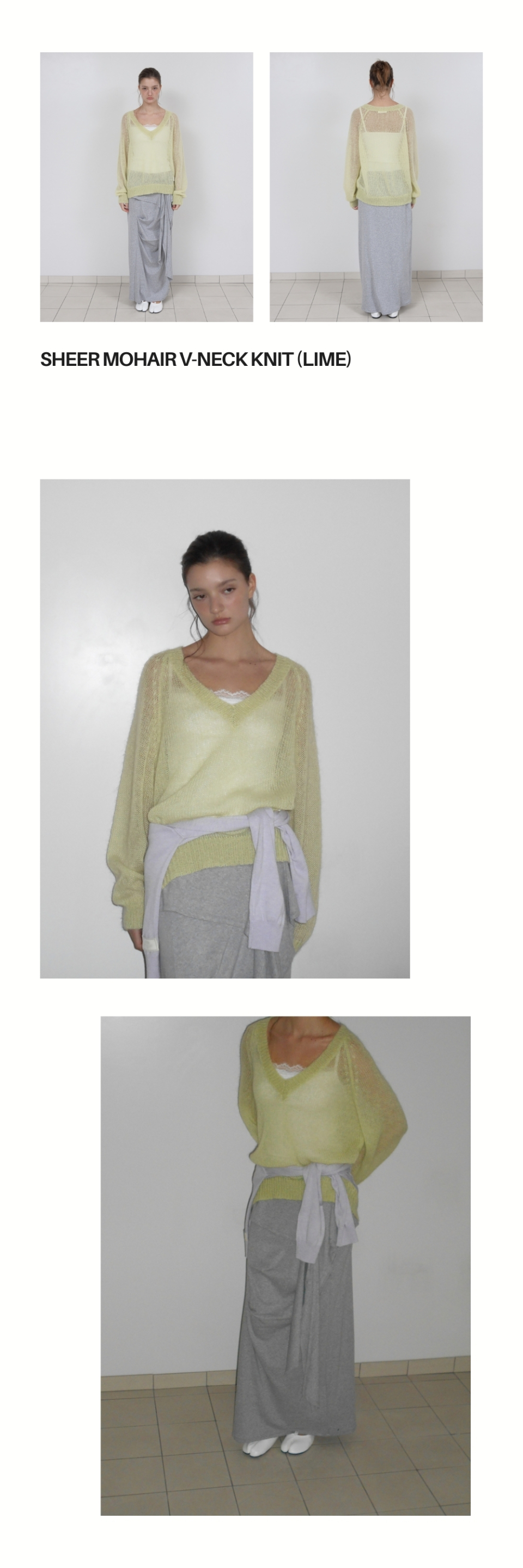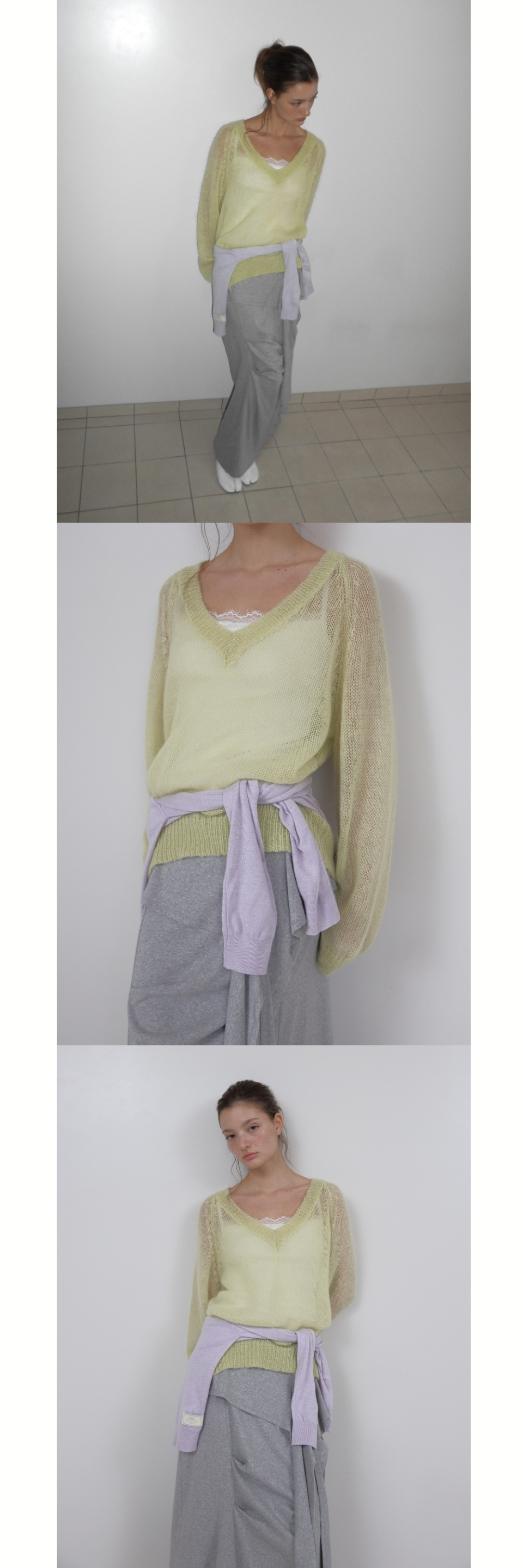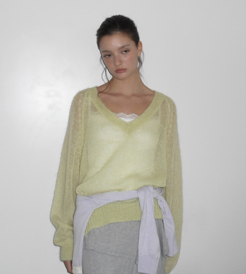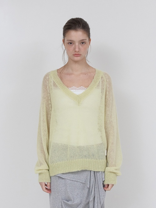SHEER MOHAIR V-NECK KNIT (LIME)