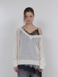 SHEER MOHAIR V-NECK KNIT (IVORY)
