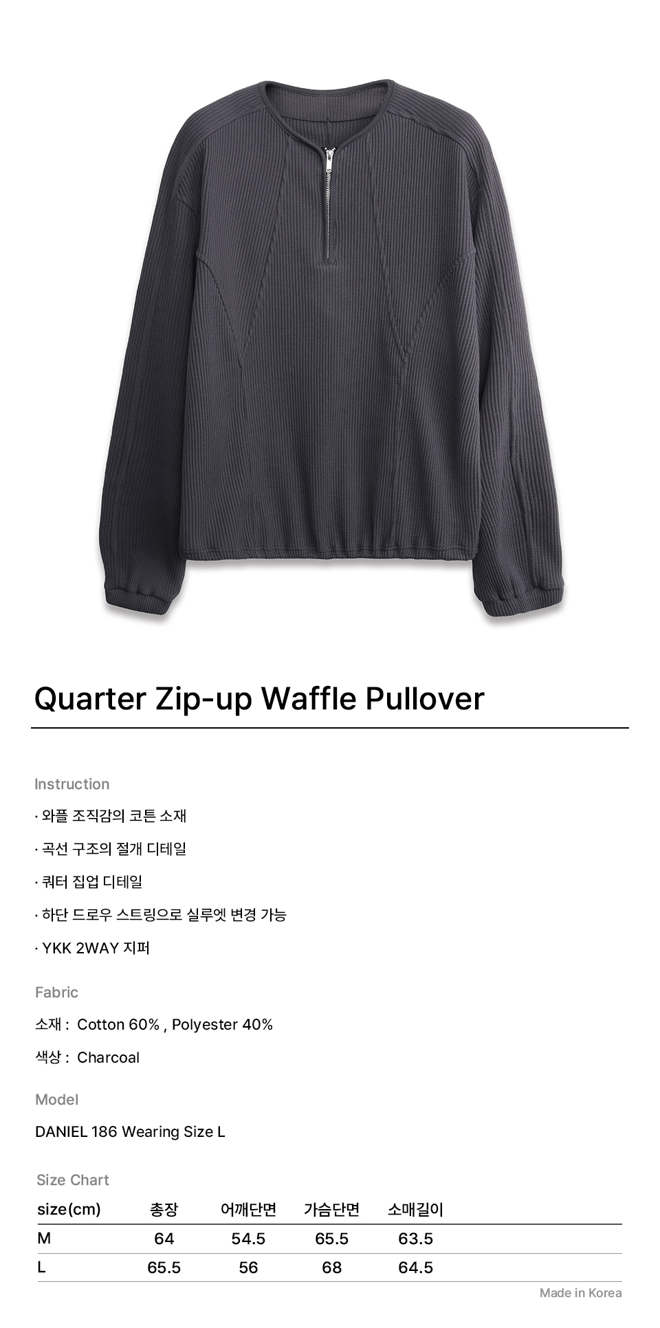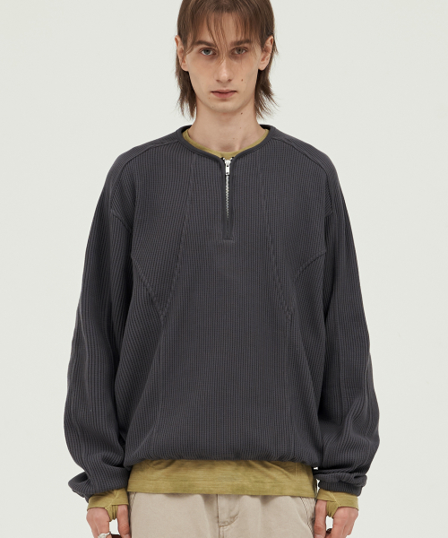 쿼터 집업 와플 풀오버 CHARCOAL