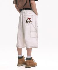백로고 카펜터 인디고 데님 버뮤다팬츠 - 크림