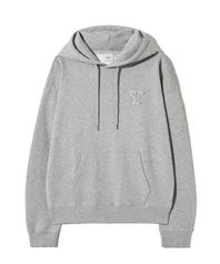 Y로고 아플리케 후드 그레이