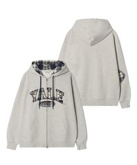 체크 투톤아치 후드집업_그레이