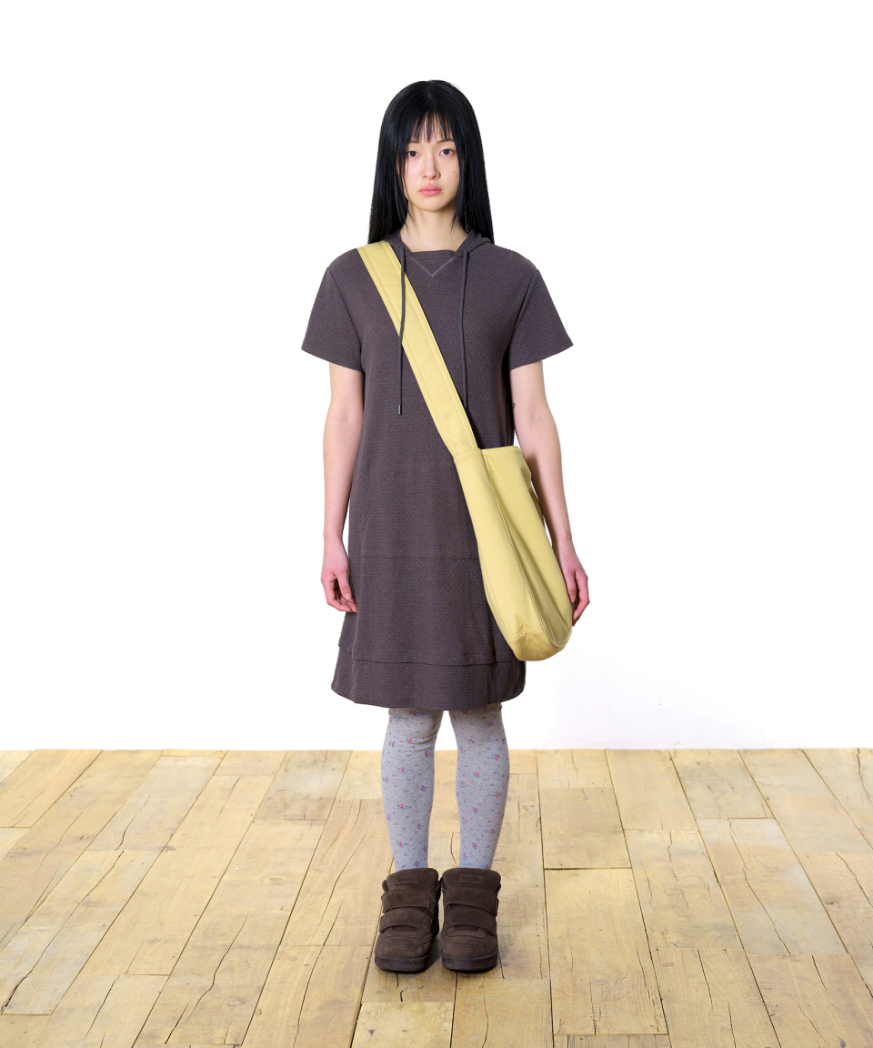 038 MINI WAFFLE HALF HOODIE ONE PIECE CHARCOAL