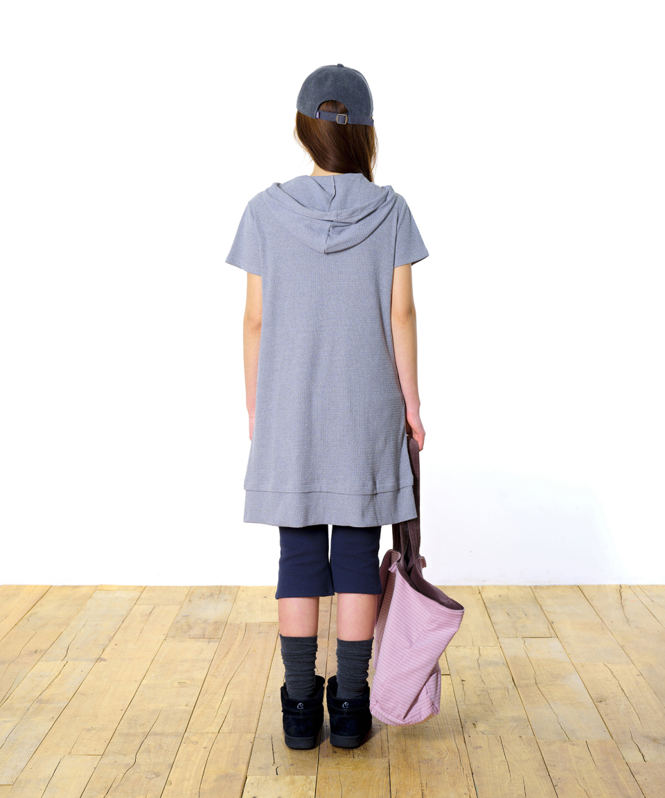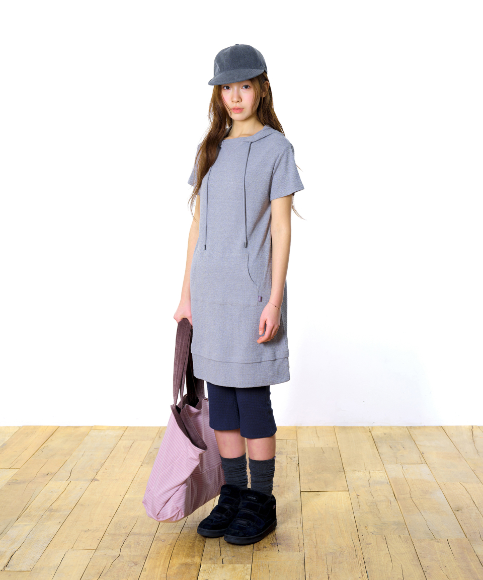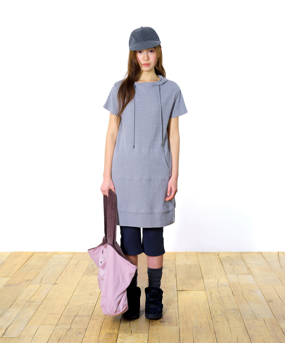 038 MINI WAFFLE HALF HOODIE ONE PIECE MELANGE GREY