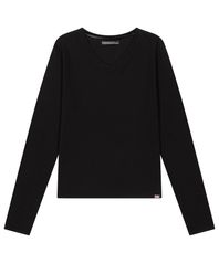 038 MINI WAFFLE V-NECK LONG SLEEVE BLACK