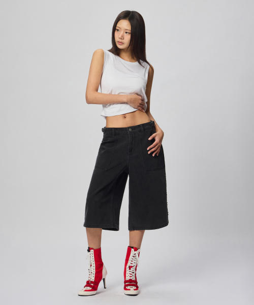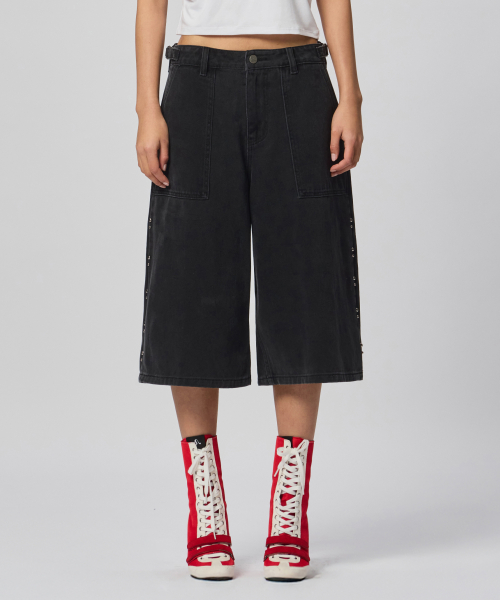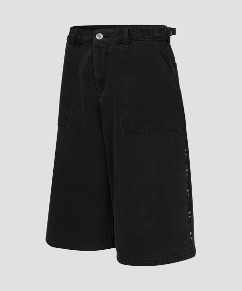 가먼트 다잉 오버핏 스터드 버뮤다 쇼츠 [블랙]