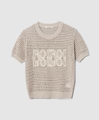 로이 레터링 크로셰 반팔 니트-베이지