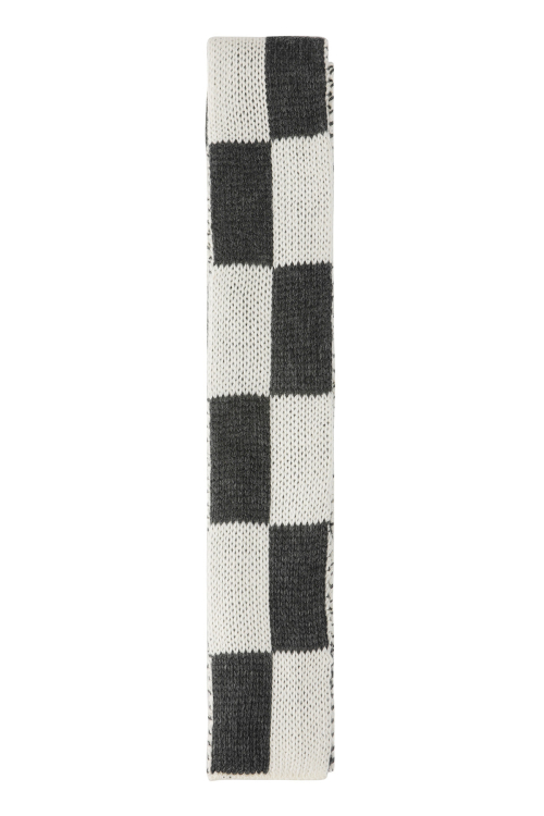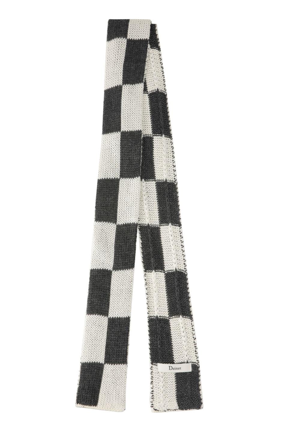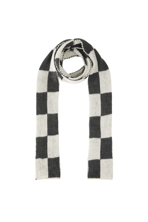 CHECKERED NEAT KNIT MUFFLER IN CHARCOAL