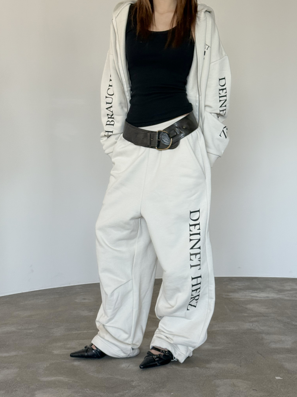 GERMAN LETTERING SWEATPANTS IN IVORY