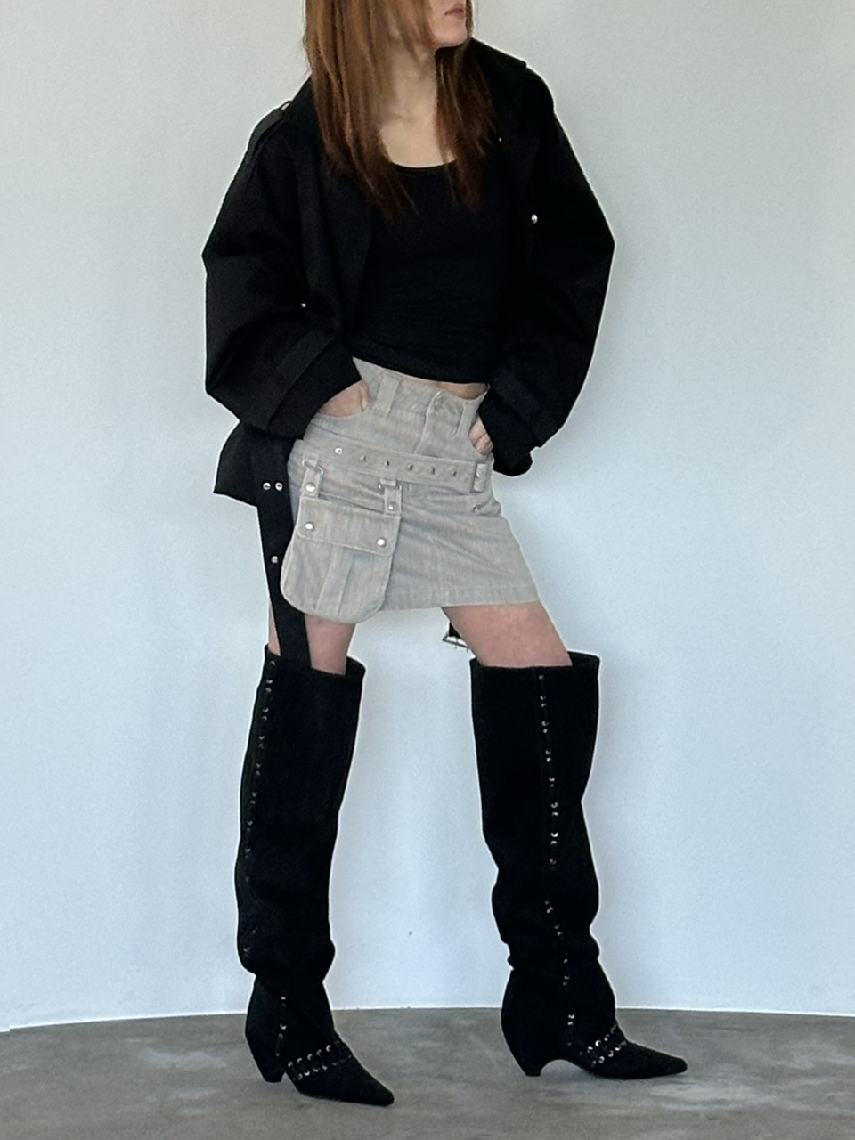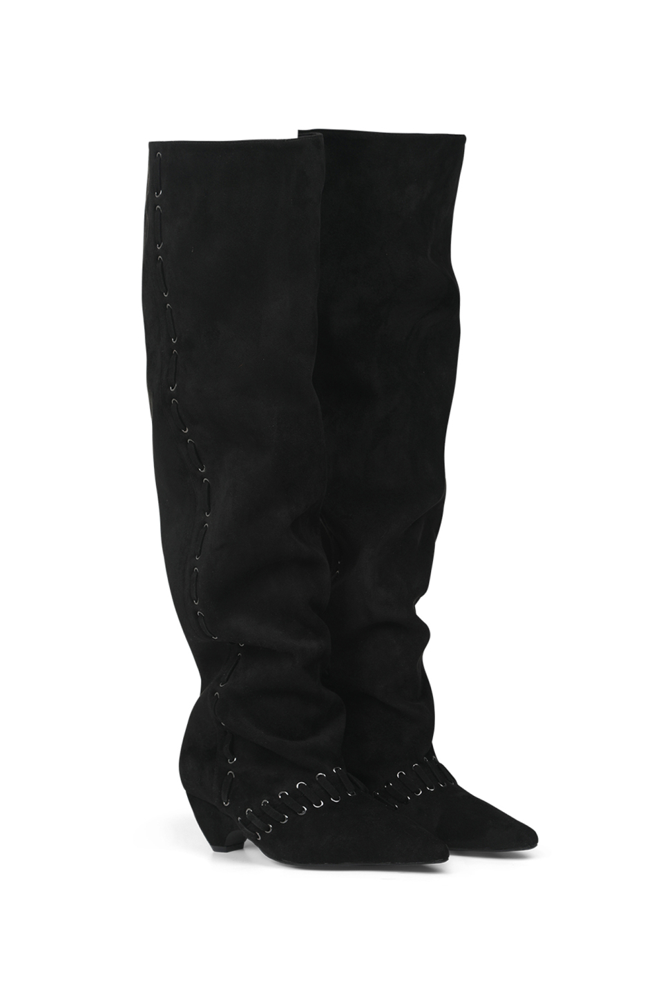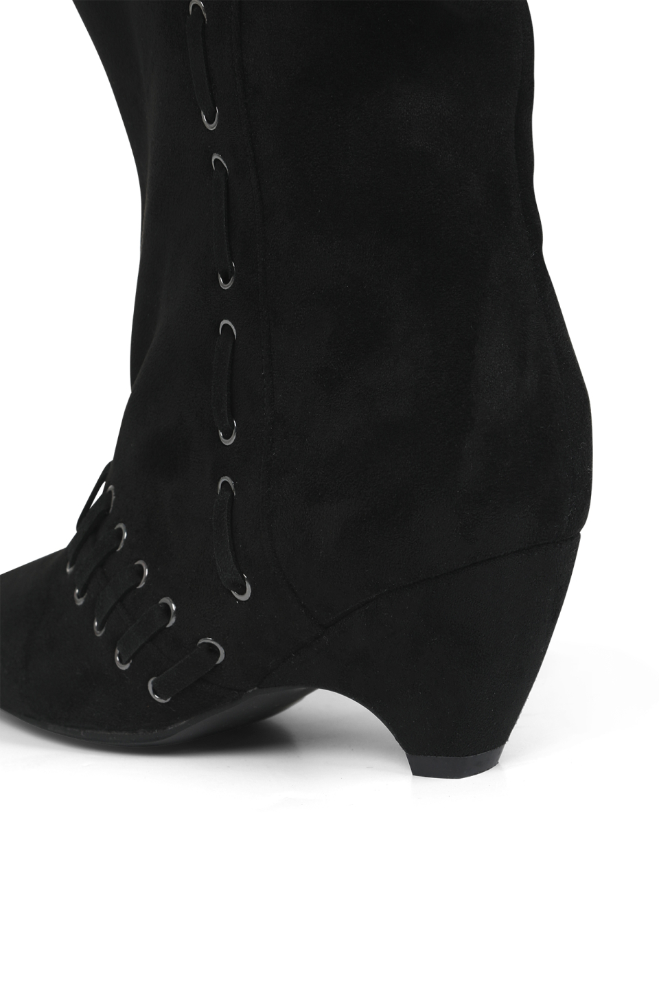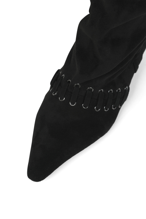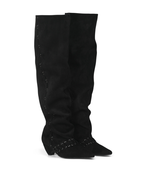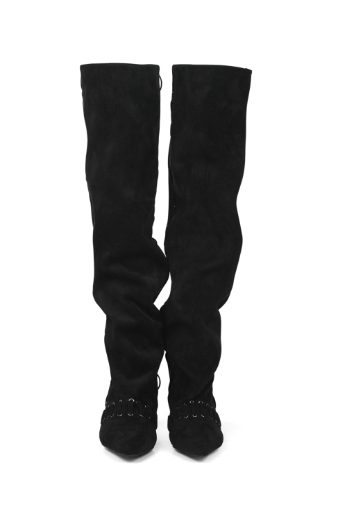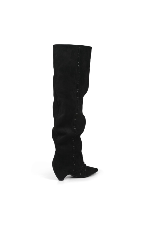 STUD NATURAL THIGH HIGH BOOTS IN BLACK