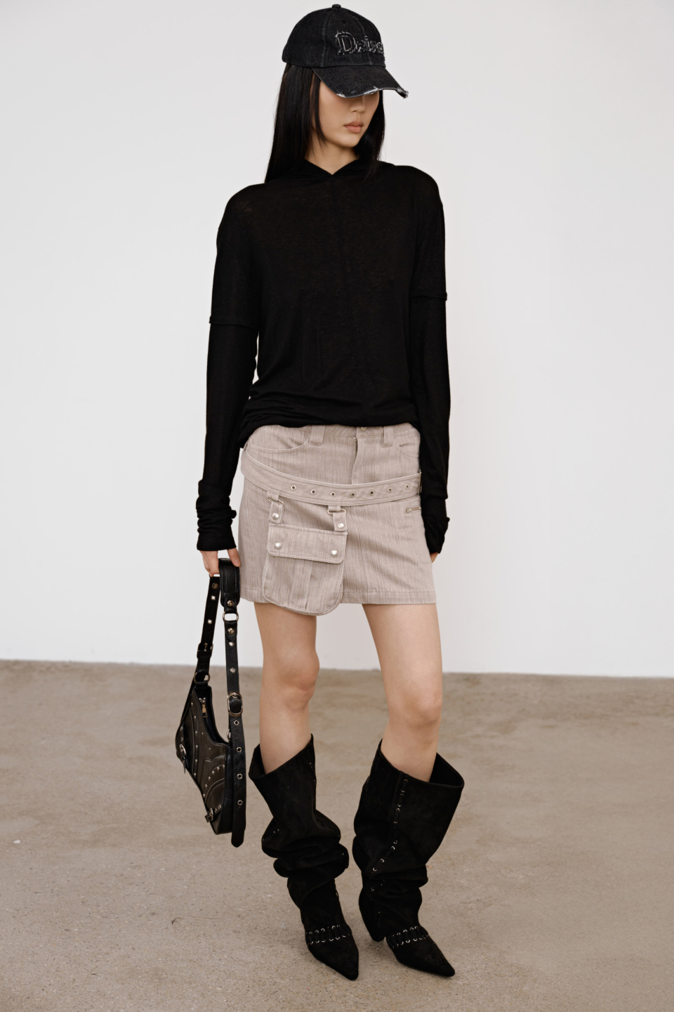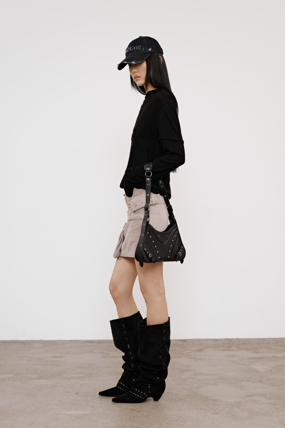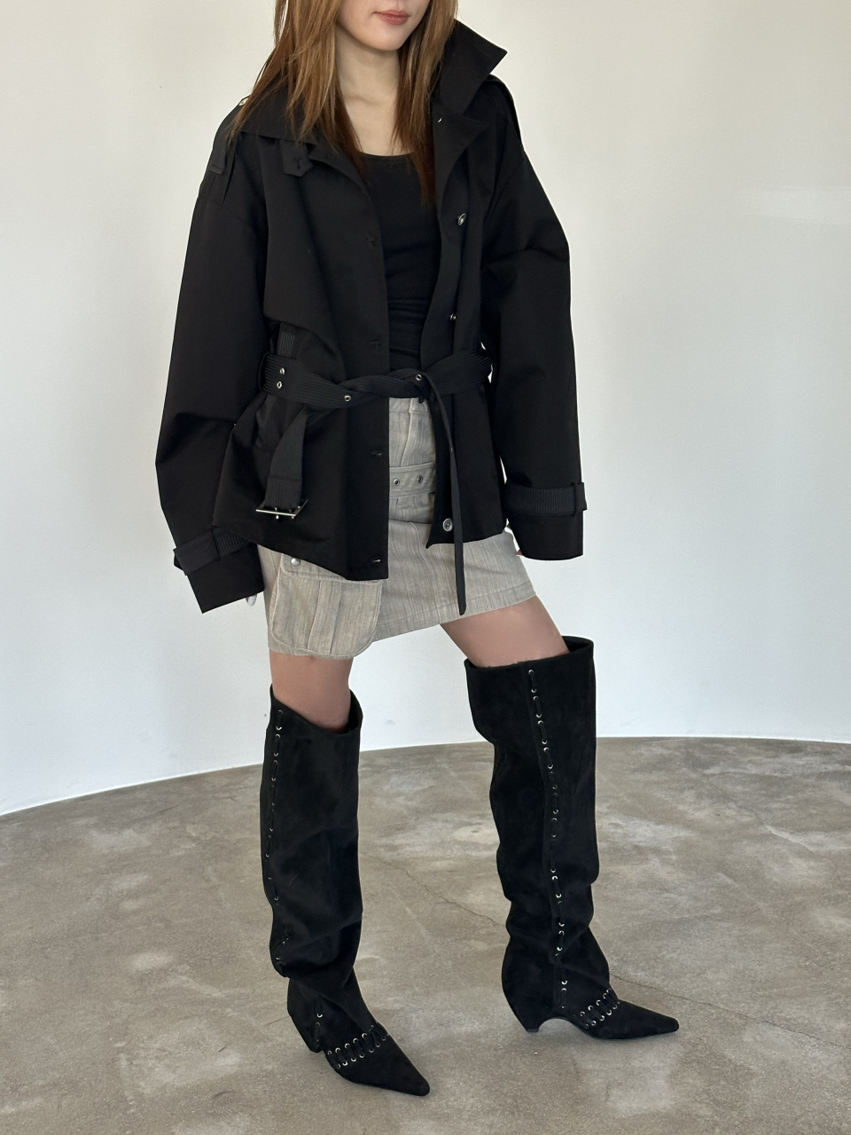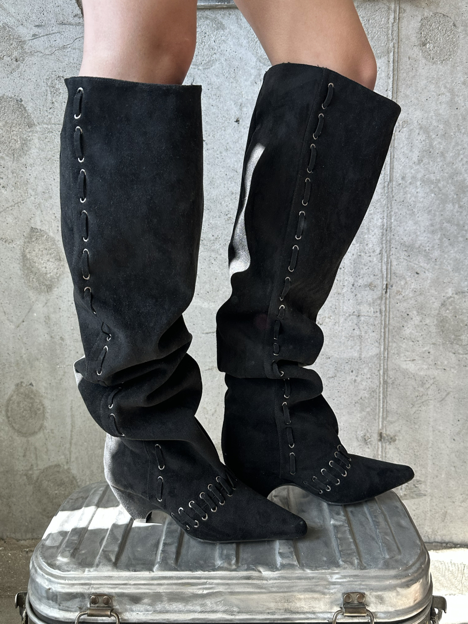 STUD NATURAL THIGH HIGH BOOTS IN BLACK