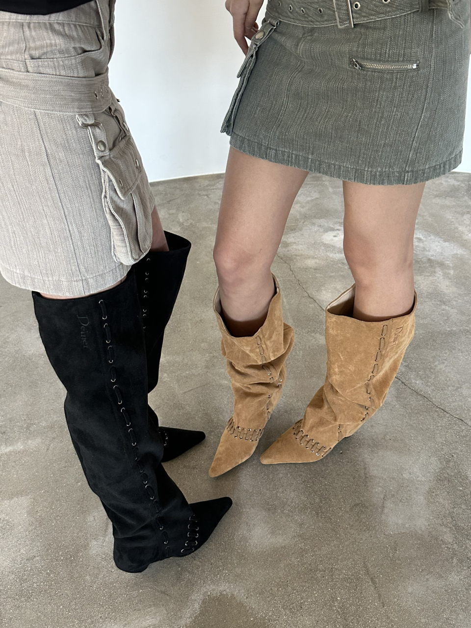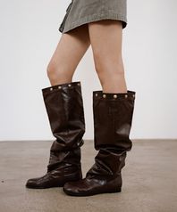 STUD NATURAL THIGH HIGH BOOTS IN BROWN