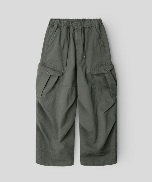 워시드 멀티포켓 카고 와이드팬츠_카키