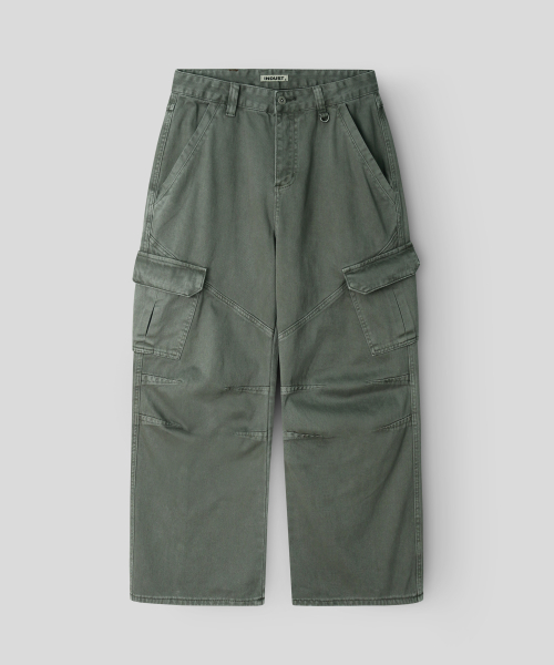 워시드 멀티포켓 카고 와이드팬츠_카키