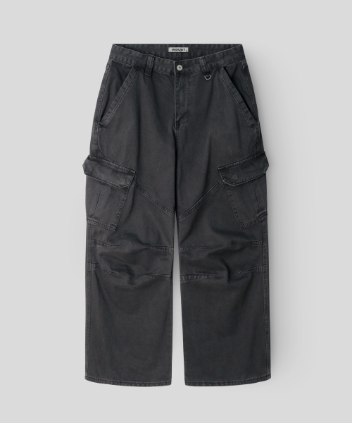 피그먼트 워시드 카고 와이드팬츠_차콜