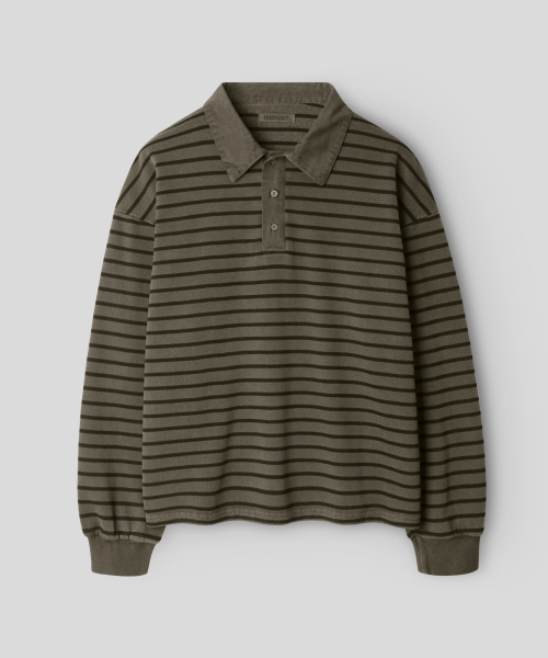 피그먼트 스트라이프 피케 티셔츠_브라운
