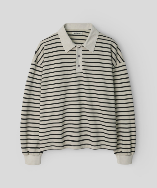 피그먼트 스트라이프 피케 티셔츠_문그레이